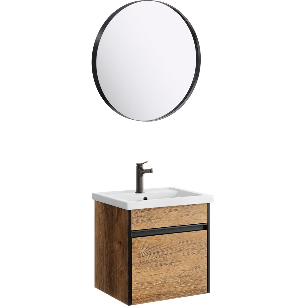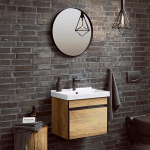 Тумба из коллекции Urban имеет габариты 46,8x38,5x46 см, выполнена из качественного ЛДСП и покрыта ламинатом, что обеспечивает долговечность и легкость в уходе. Мебельная раковина из фарфора с размерами 50x40 см оснащена встроенным сливом-переливом и имеет одно готовое отверстие под смеситель. Округлое зеркало с диаметром 60 см и стальным корпусом без подсветки элегантно завершает комплект.