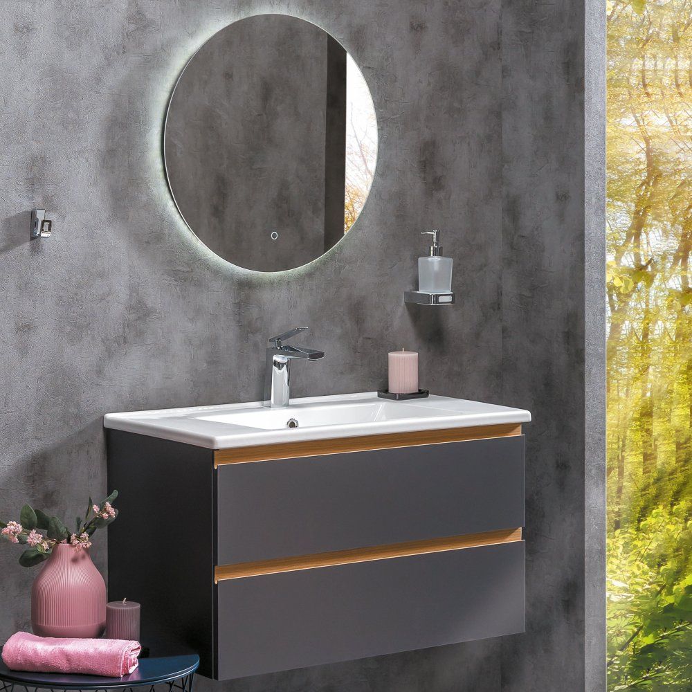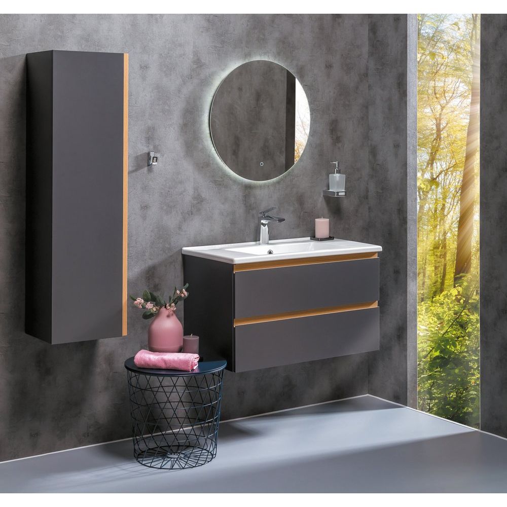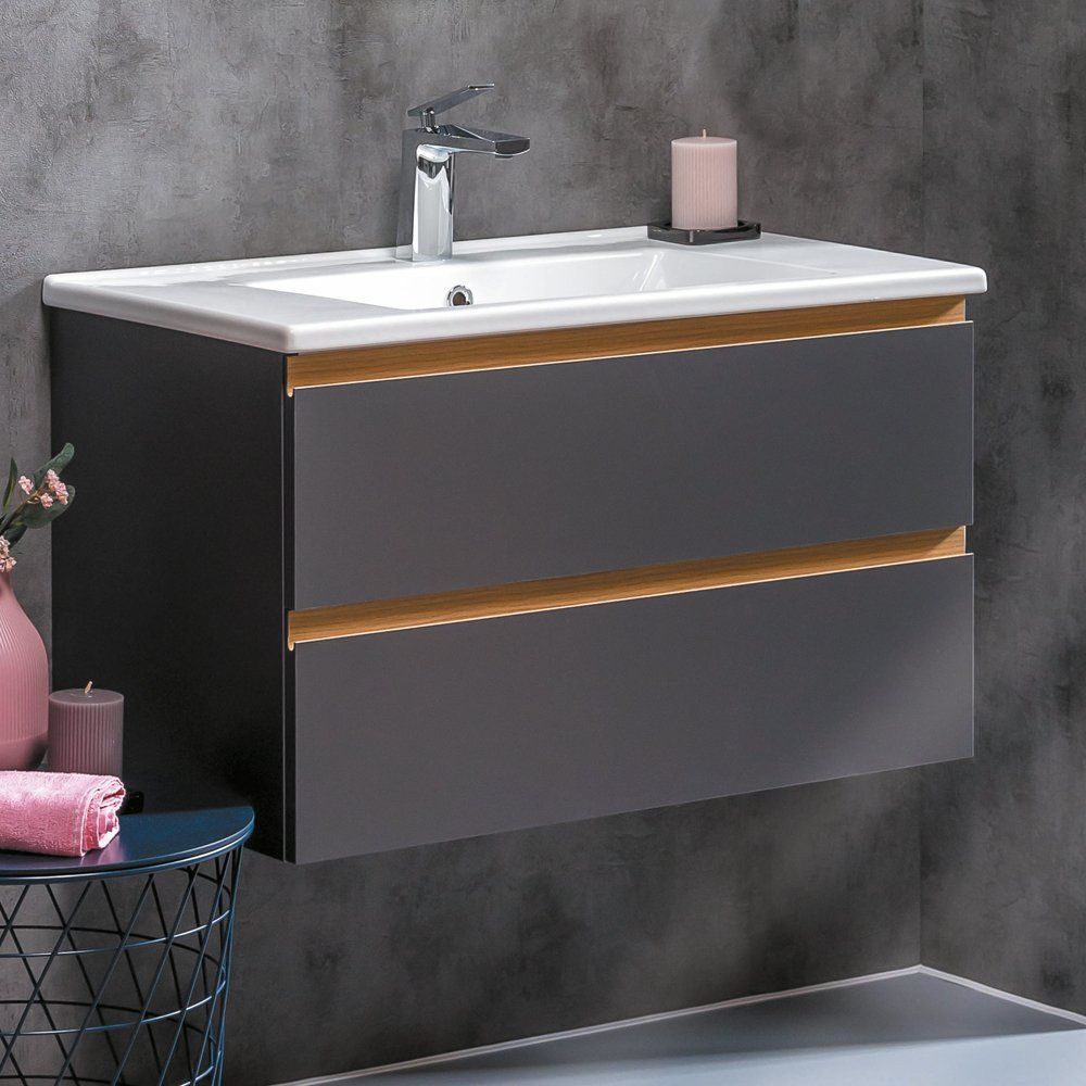 Мебель для ванной комнаты Armadi Art Capolda 85 в цвете антрацит — идеальное решение для создания современного и элегантного интерьера в вашей ванной. Этот комплект сочетает в себе функциональность и стиль, от легкости подвесного монтажа до удобства использования благодаря плавному механизму доводчиков. Коллекция Capolda от бренда Armadi Art подчеркнет вашу индивидуальность, обеспечив долговечность и уют.