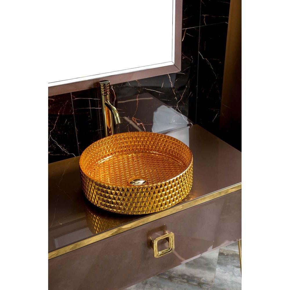 - Дополнительный штрих роскоши с золотыми ножками и ручками из латуни.