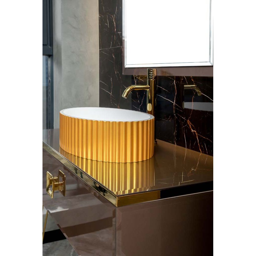 Тумба Armadi Art Lucido имеет габариты 100x51x25 см и оформлена в лиловом цвете. Она выполнена из МДФ и стекла с эмалевым покрытием, что придаёт ей надёжность и долговечность. Столешница Armadi Art Lucido с размерами 101x52x0.8 см выполнена из стекла нежного розового оттенка и имеет одно готовое отверстие для смесителя. Золотые ножки из нержавеющей стали высотой 46 см и ручки из латуни отлично дополняют комплект, добавляя ему благородства. Все изделия произведены в Италии, гарантия распространяется на 1 год.