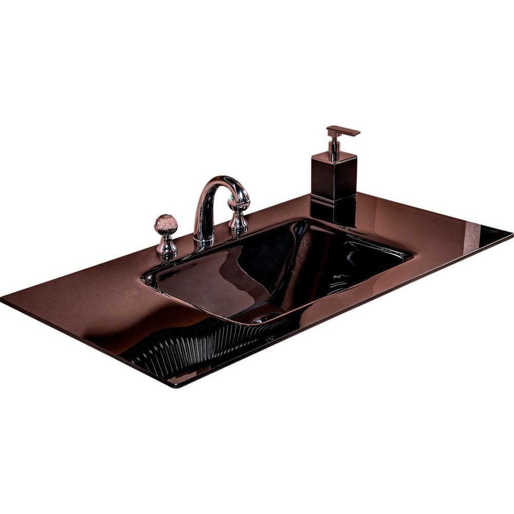Мебельная раковина Armadi Art NeoArt из черного стекла имеет размеры 101x52 см, оснащена встроенной системой слива-перелива и отверстием под смеситель. Обратите внимание, что донный клапан приобретается отдельно.