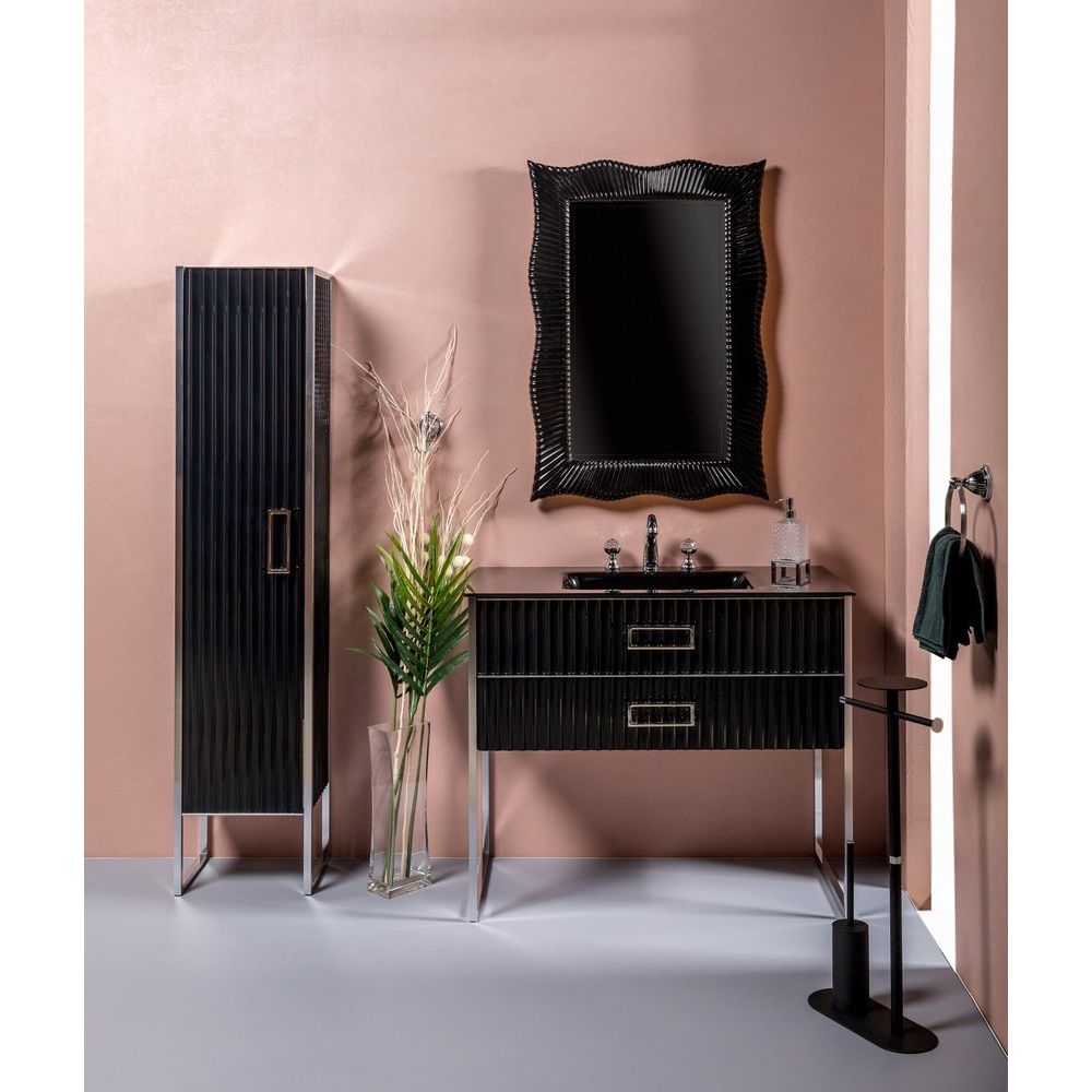 Изысканная мебель для ванной комнаты "Armadi Art Monaco 100" в черном цвете с хромированной фурнитурой – это сочетание элегантности и функциональности. Коллекция Monaco олицетворяет современную итальянскую роскошь, которая создаст в вашей ванной комнате атмосферу уюта и комфорта. Комплект включает в себя всё необходимое для стильного оформления пространства, от тумбы до зеркала с подсветкой, обеспечивая не только красивый, но и удобный интерьер.
