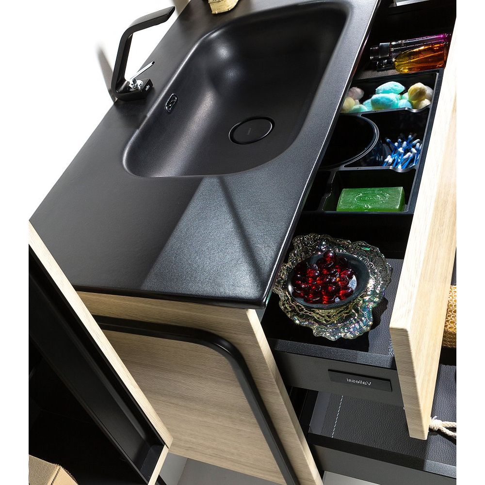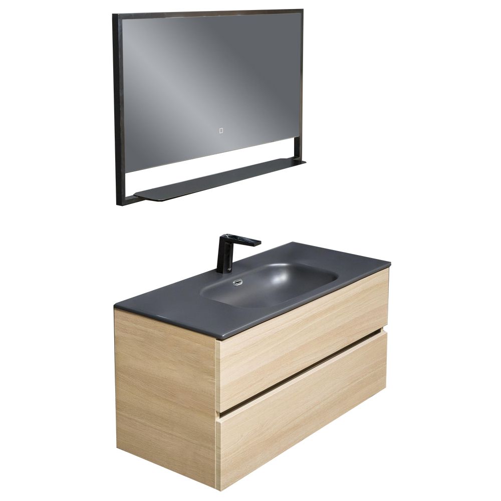 Откройте для себя утонченное сочетание современного дизайна и функциональности с комплектом мебели для ванной Armadi Art Vallessi 100. Изящная тумба в цвете светлого дуба и стильная черная раковина — это не только предметы интерьера, но и настоящие произведения искусства. Данный гарнитур станет неповторимым акцентом в вашей ванной комнате, добавляя в нее атмосферу теплоты и элегантности. Зеркало из коллекции Vallessi с антрацитовым покрытием дополнит композицию, освещая пространство мягким светом и создавая комфорт в использовании благодаря сенсорной системе управления.