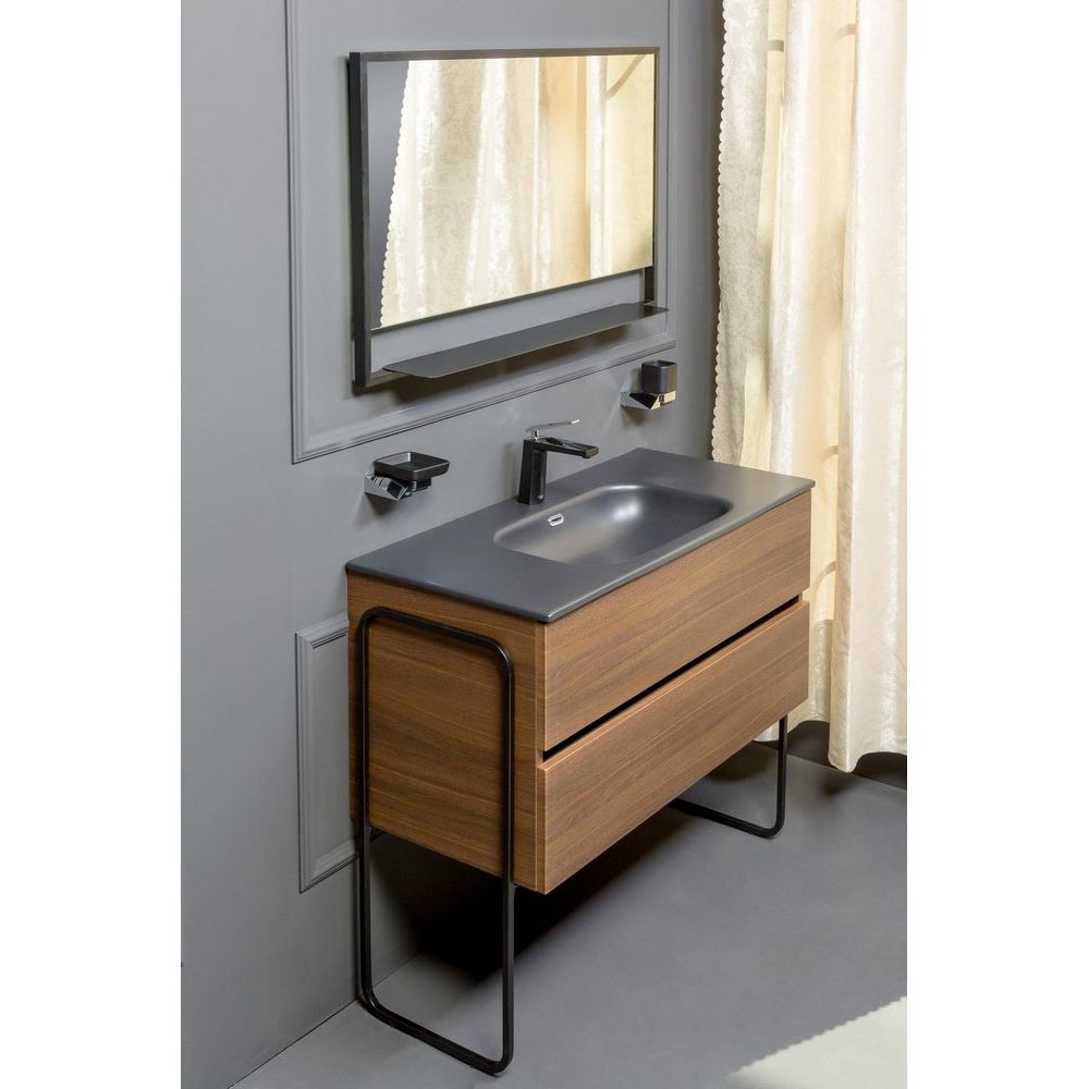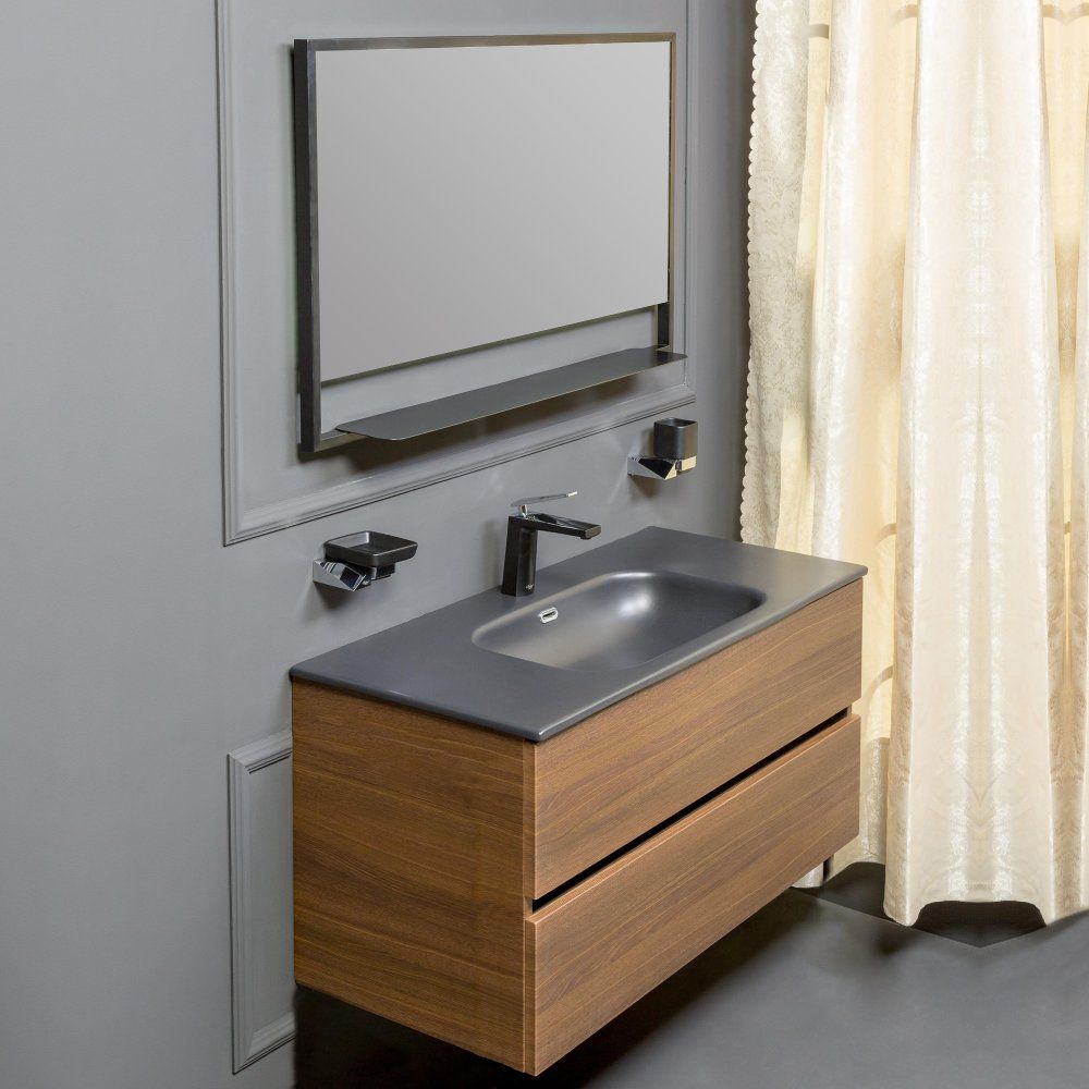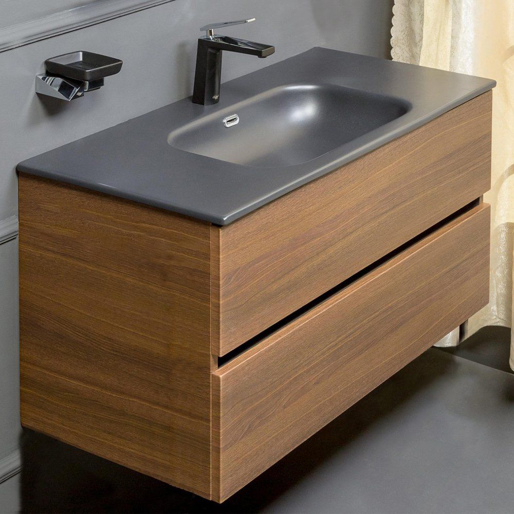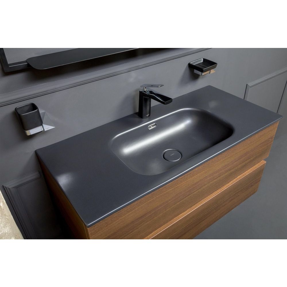 - Изысканный дизайн в благородном оттенке дуб темный с контрастной черной раковиной