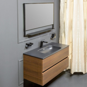 Тумба для комплекта Armadi Art Vallessi 100 выполнена в размерах 100x46x53 см и предназначена для подвесного монтажа. Корпус и фасады изготовлены из прочного МДФ с акриловым покрытием, которые обеспечивают не только эстетичный внешний вид, но и устойчивость к воздействию влаги. Встроенные механизмы доводчиков делают открытие и закрывание ящиков плавным и бесшумным. Зеркало-шкаф со схожими характеристиками позволяет удобно хранить любые принадлежности, а его габариты составляют 100x13x65 см.