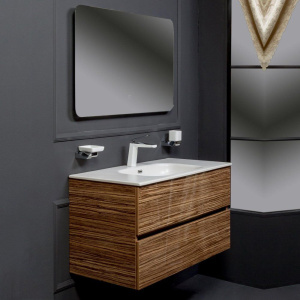 В комплект входит подвесная тумба из МДФ с акриловым покрытием, размеры которой составляют 100x46x53 см. Мебельная раковина Vallessi 100 изготовлена из фаянса, ее размеры — 101x46 см, она оборудована декоративной накладкой на слив, встроенным сливом-переливом и одним готовым отверстием под смеситель. Завершает комплект круглое зеркало с подсветкой — 80 см в диаметре, выполненное в алюминиевом корпусе со встроенными подвесами. Все изделия имеют гарантию 1 год и произведены в Италии.