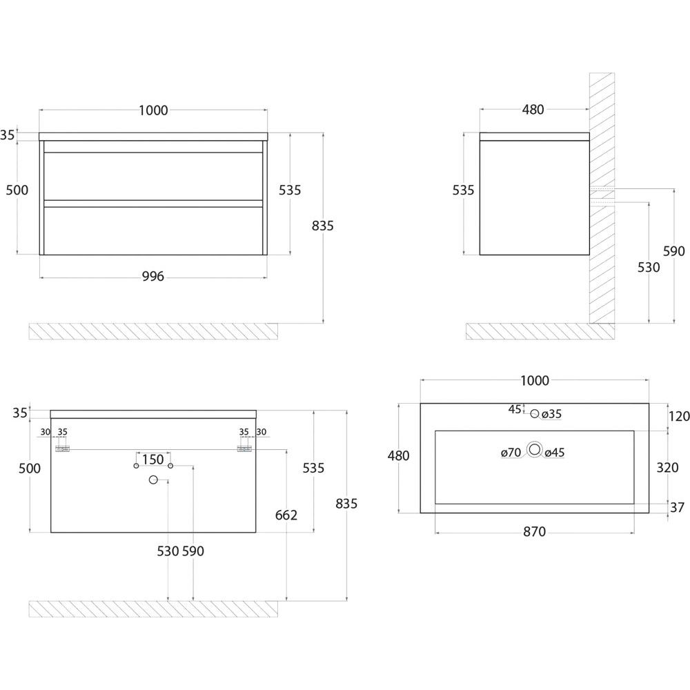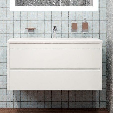 В комплект мебели для ванной Art&Max Family 100 входит подвесная тумба размером 99,6x48x50 см, выполненная из ЛДСП с акриловым покрытием. Механизм доводчика позволяет пользователю наслаждаться плавным закрыванием ящиков. Мебельная раковина из искусственного мрамора размером 99,7x48 см оснащена сливом-переливом и готовым отверстием под смеситель, при этом донный клапан приобретается отдельно. Зеркало размером 100х70 см изготовлено с применением антизапотевателя и сенсорной подсветкой, обеспечивающей простоту управления. Гарантия на тумбу и раковину составляет 2 года (Италия), на зеркало — 1 год (Россия).