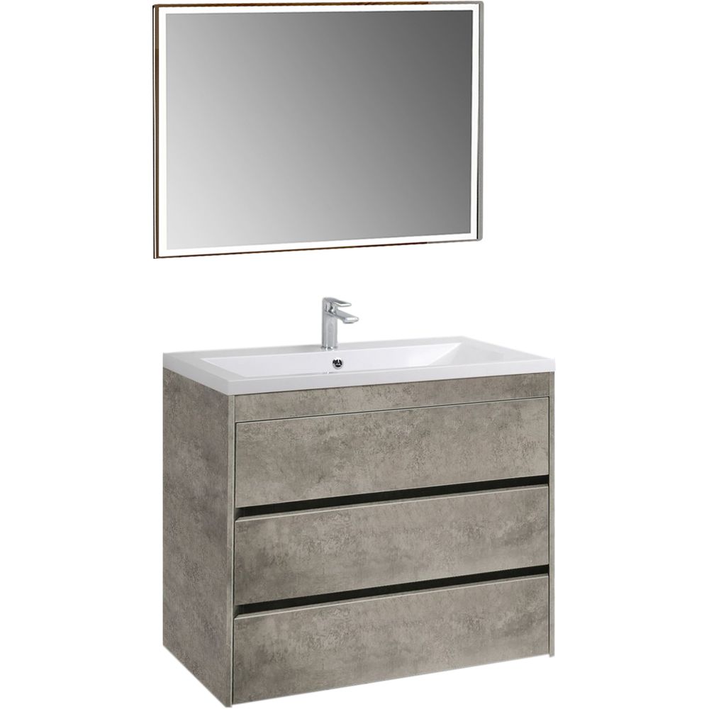Комплект включает в себя напольную тумбу размером 89,6x48x80 см, выполненную в материале ДСП с пленочным покрытием, что обеспечивает устойчивость к влаге. Тумба оснащена ящиками и дополнительной подставкой для детей. Мебельная раковина из искусственного мрамора имеет размеры 90,4x48,7 см, слив-перелив и одно отверстие под смеситель. Зеркало из пластика и алюминия в размере 100x3x80 см оснащено сенсорной подсветкой и управляется легким касанием. Гарантия на продукцию – 2 года для мебели и раковины, 1 год для зеркала, что подтверждает качество итальянской и российской сборки.