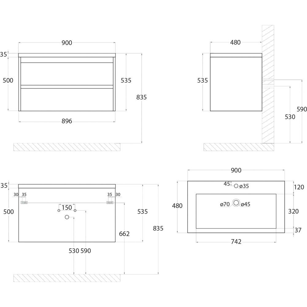 - Механизм доводчика обеспечивает плавное закрывание ящиков и раковины из искусственного мрамора.
