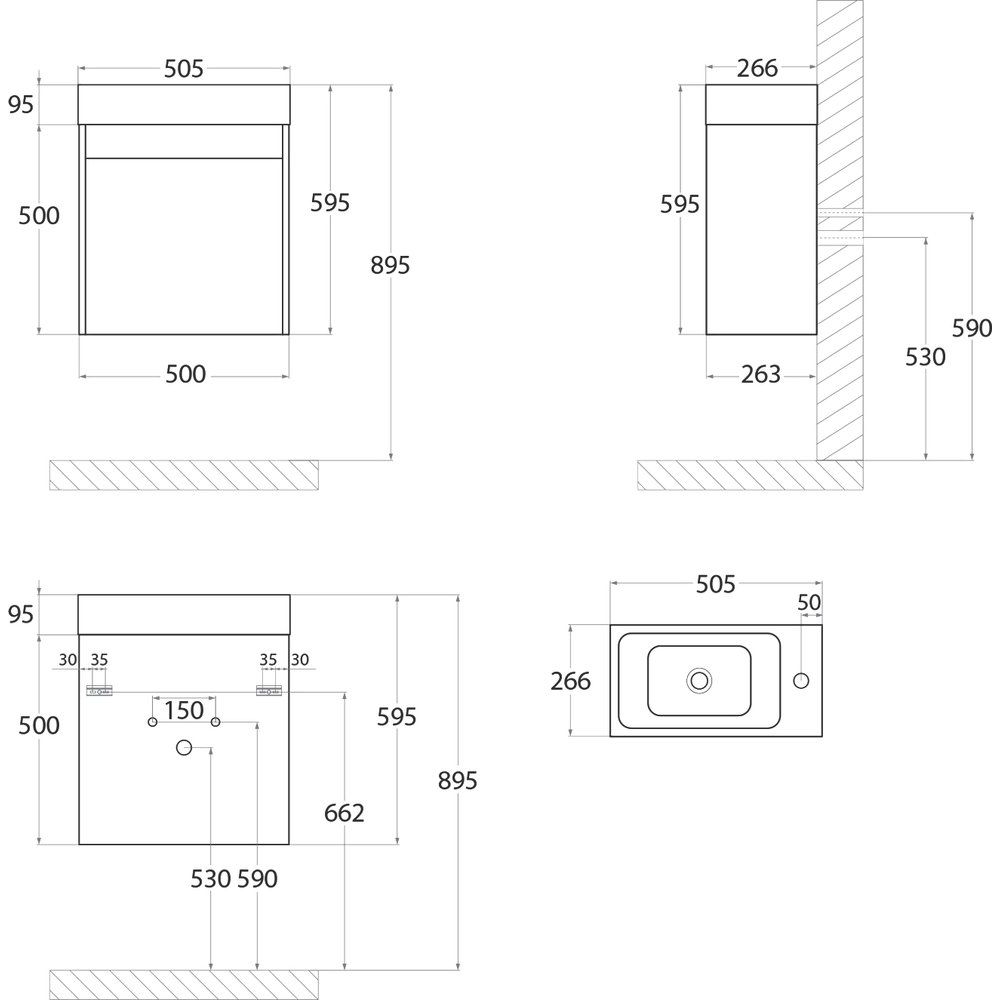 Мебельная раковина из искусственного мрамора имеет размеры 50,5x26,6 см. Оснащена 1 отверстием под смеситель, для сифона диаметром 3,2 см. Донный клапан приобретается отдельно.