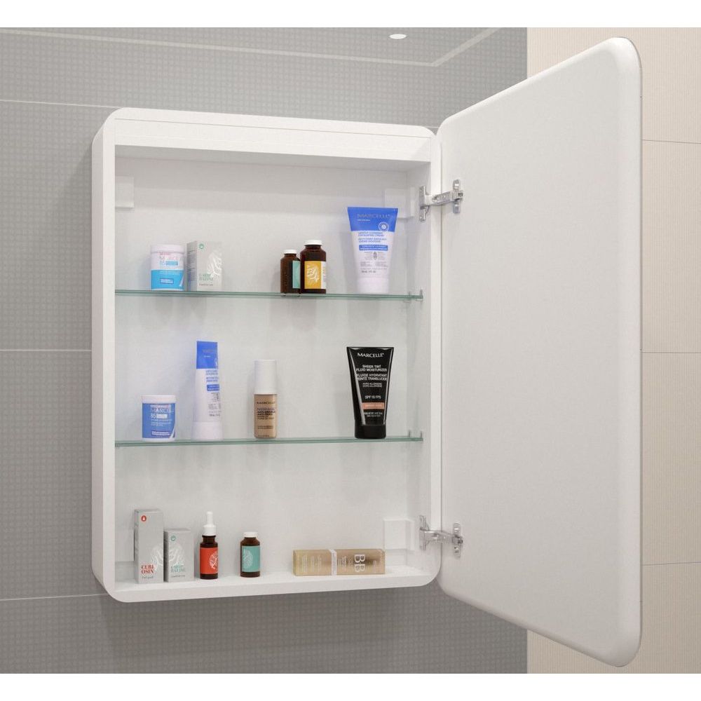 Зеркало-шкаф Art&Max Platino R, 60 с габаритами 60x13,3x80 см, оснащено подсветкой и сенсорным управлением. Корпус изготовлен из МДФ с пленочным покрытием, также оснащено механизмом доводчика и подвесами для надежной фиксации на стене.