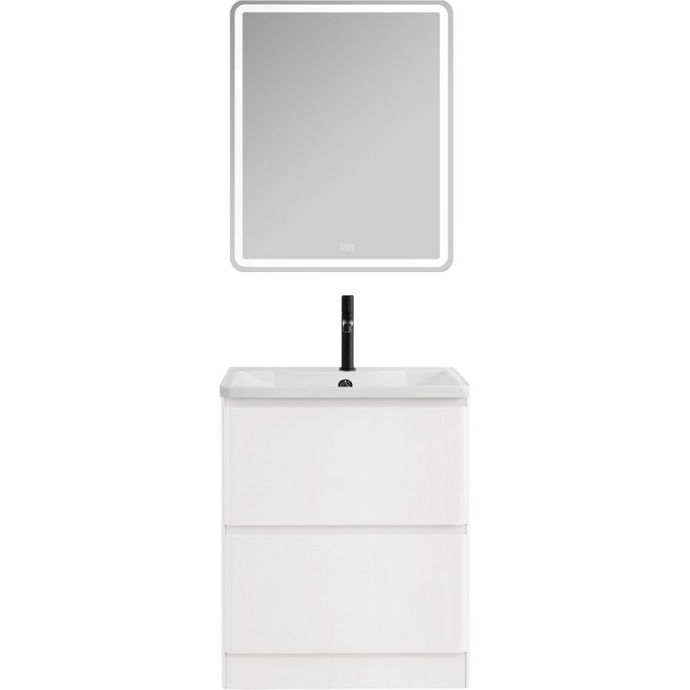 В комплект входит напольная тумба BelBagno Albano 70, размеры которой составляют 69,6x45x80 см. Она оснащена механизмом доводчика для плавного закрывания, что значительно продлевает срок службы ящиков. Корпус и фасад выполнены из МДФ с пленочным покрытием, что обеспечивает устойчивость к влаге и долговечность.