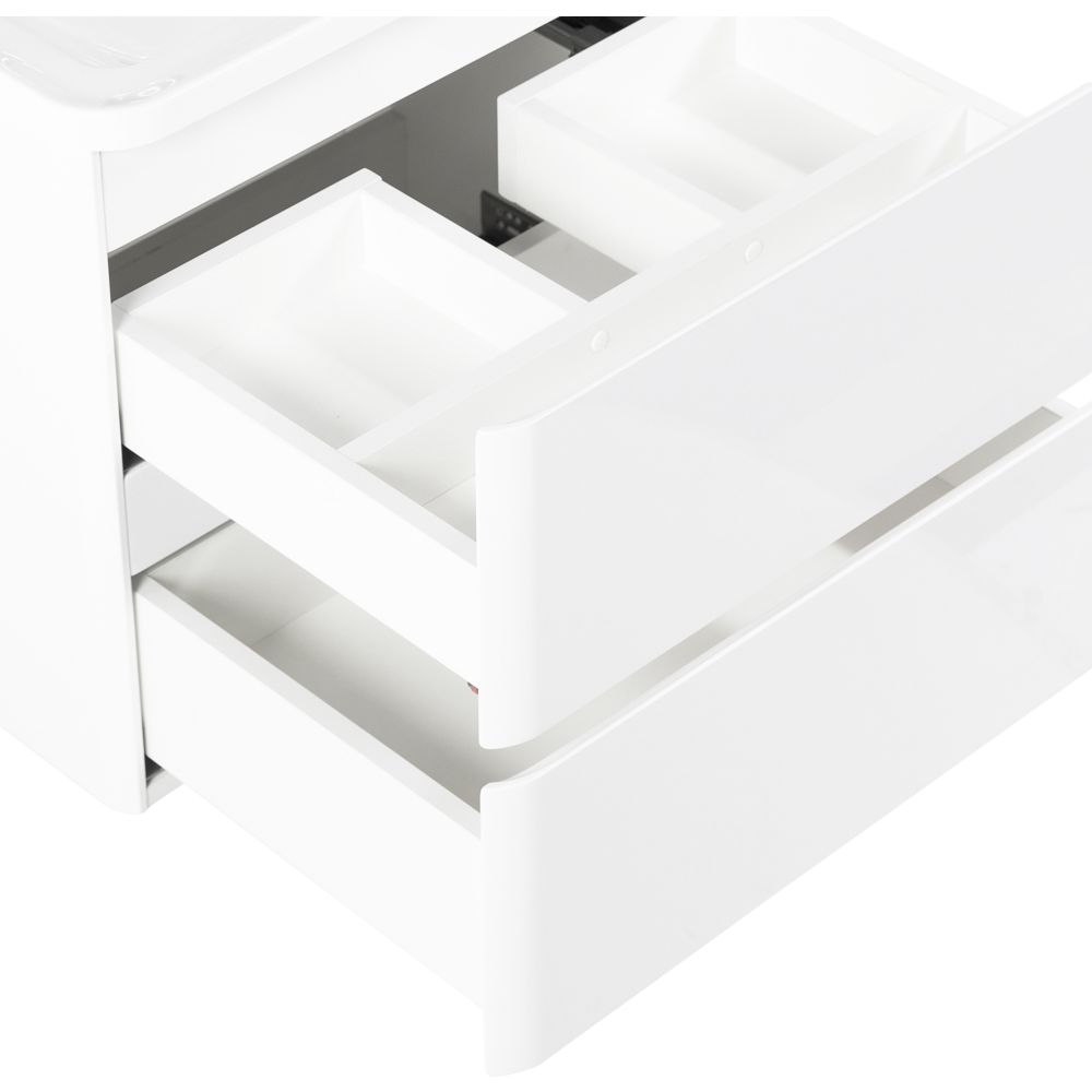 Тумба в комплекта BelBagno Albano 70 подвесная, с размерами 69,6x45,5x50 см, оснащена механизмом доводчика для бесшумного закрывания ящиков. Выполнена из МДФ, тумба покрыта пленкой для длительного использования и имеет элегантное покрытие bianco lucido.