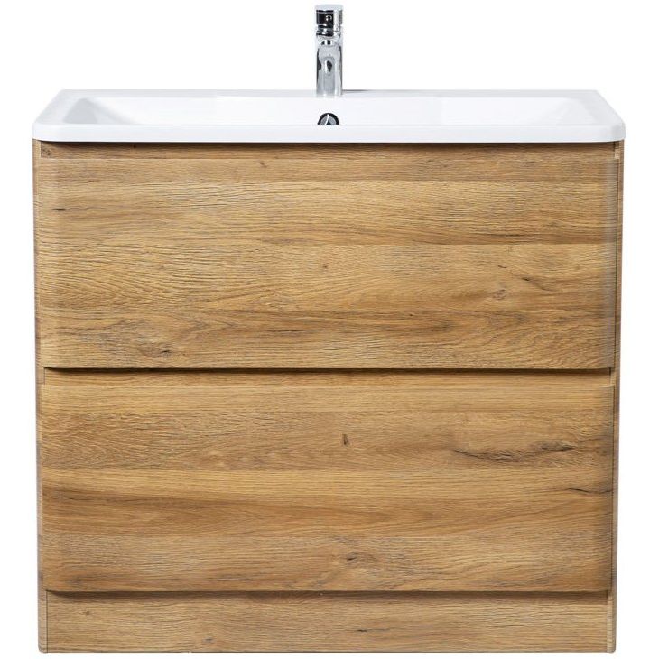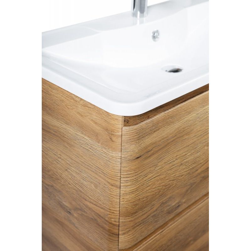 Напольная тумба BelBagno Albano 90 (rovere rustico) имеет размеры 89,6x45x81 см. Она изготовлена из МДФ и покрыта пленкой, что гарантирует долговечность и устойчивость к влаге. Механизм доводчика обеспечивает плавное закрывание ящиков. Комплект дополняет мебельная раковина из искусственного мрамора размером 90x45,5 см с необходимыми отверстиями для монтажа смесителя и слив-перелив. Зеркало размером 90x3x80 см оборудовано LED-подсветкой и управляется механической кнопкой. Произведено в Италии и на все элементы гарнитура предоставляется гарантия.