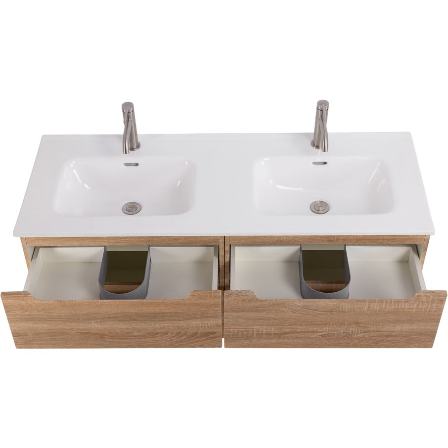 В комплект входит элегантная мебельная раковина BelBagno BB1200-2-ETL 121 шириной 121 см, выполненная из высококачественного фаянса. Раковина оснащена двумя отверстиями под смеситель и требует отдельного приобретения донного клапана и слива-перелива. Стильная подвесная тумба размером 60 см на 45,5 см с доводчиками обеспечит комфортное закрывание благодаря МДФ конструкции с пленочным покрытием. Итальянское зеркало с LED-подсветкой и сенсорным управлением размером 80 см на 50 см добавит современности и удобства вашему пространству.