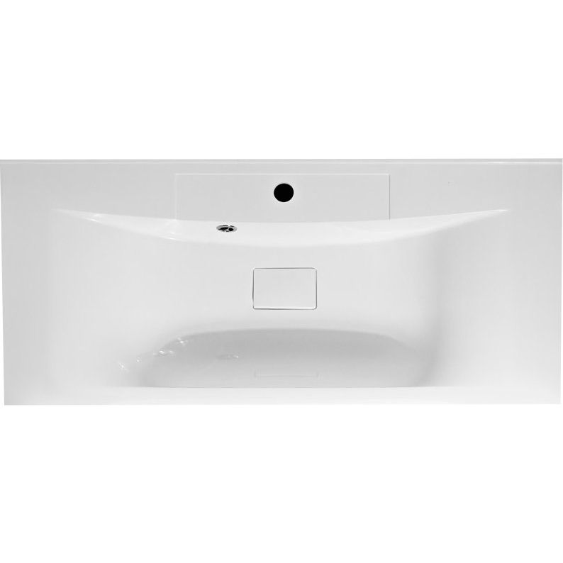 Мебельная раковина также изготовлена из искусственного камня, размеры — 100x44,5 см. В комплекте идет слив-перелив с декоративной накладкой и один готовый отверстие под смеситель (без установки донного клапана).
