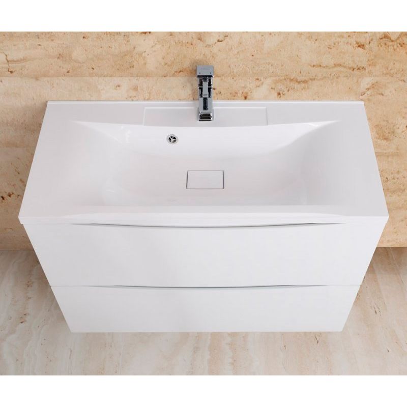 Комплект включает тумбу, мебельную раковину и зеркало. Тумба BelBagno Marino 100 выполнена из МДФ, имеет габариты 99,6x44,8x80,5 см и покрыта пленкой, что гарантирует стойкость к влаге и повреждениям. Она оснащена ящиками с механизмом доводчика для плавного закрывания, создавая дополнительный комфорт в использовании. Глянцевый «bianco lucido» фасад придаёт изделию классический вид.