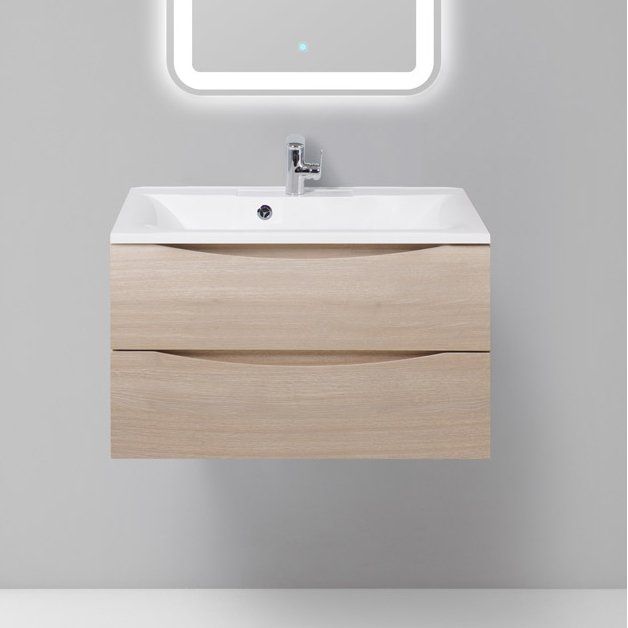 - Тумба: выполнена из МДФ с покрытием пленкой, обладает габаритами 79,6x44,8x50 см. Подвесная конструкция с механизмом доводчика обеспечивает бесшумное и плавное закрывание.