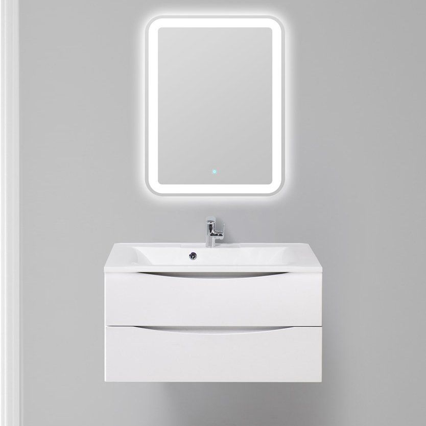 Зеркало: 80x3x60 см с интегрированной подсветкой и сенсорным выключателем для удобного управления.