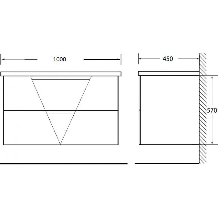 Тумба: размеры 100x45x57 см, подвесная конструкция. Изготовлена из МДФ с эмалевым покрытием, оснащена механизмом доводчика Soft close.