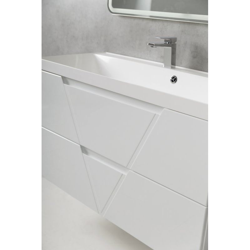Мебель для ванной комнаты BelBagno Vittoria 100 bianco lucido — это стильное и функциональное решение для вашего интерьера. Подвесная конструкция гарнитура помогает оптимально использовать пространство, облегчая уборку и создавая эффект легкости в помещении. Декор в виде рельефного перевернутого треугольника на фасаде и утопленные в плоскость ручки придают изделию уникальные черты, делая его ярким акцентом в вашей ванной комнате. Корпус изделия выполнен из высококачественного влагостойкого МДФ с защитным эмалевым покрытием, что гарантирует долговечность и устойчивость к влаге. Ящики с системой Soft close от немецкого бренда Hettich обеспечивают плавное и бесшумное закрывание. Белоснежная раковина из искусственного камня устойчива к загрязнениям и образованию грибка, а влагостойкое зеркало с встроенной подсветкой и сенсорным управлением добавит элегантности и функциональности.