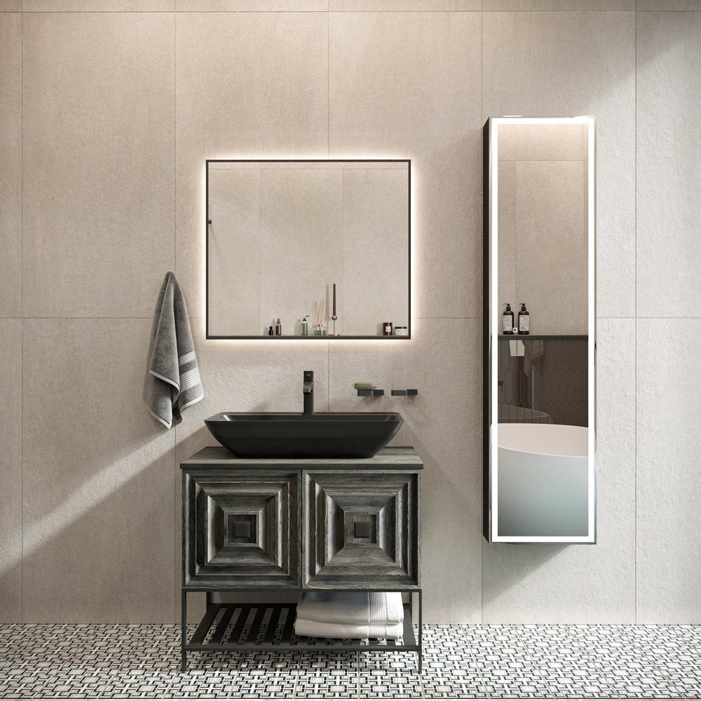- Зеркало с регулируемой подсветкой и инфракрасным выключателем для дополнительного комфорта.