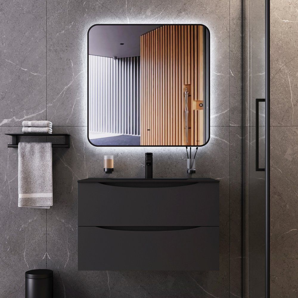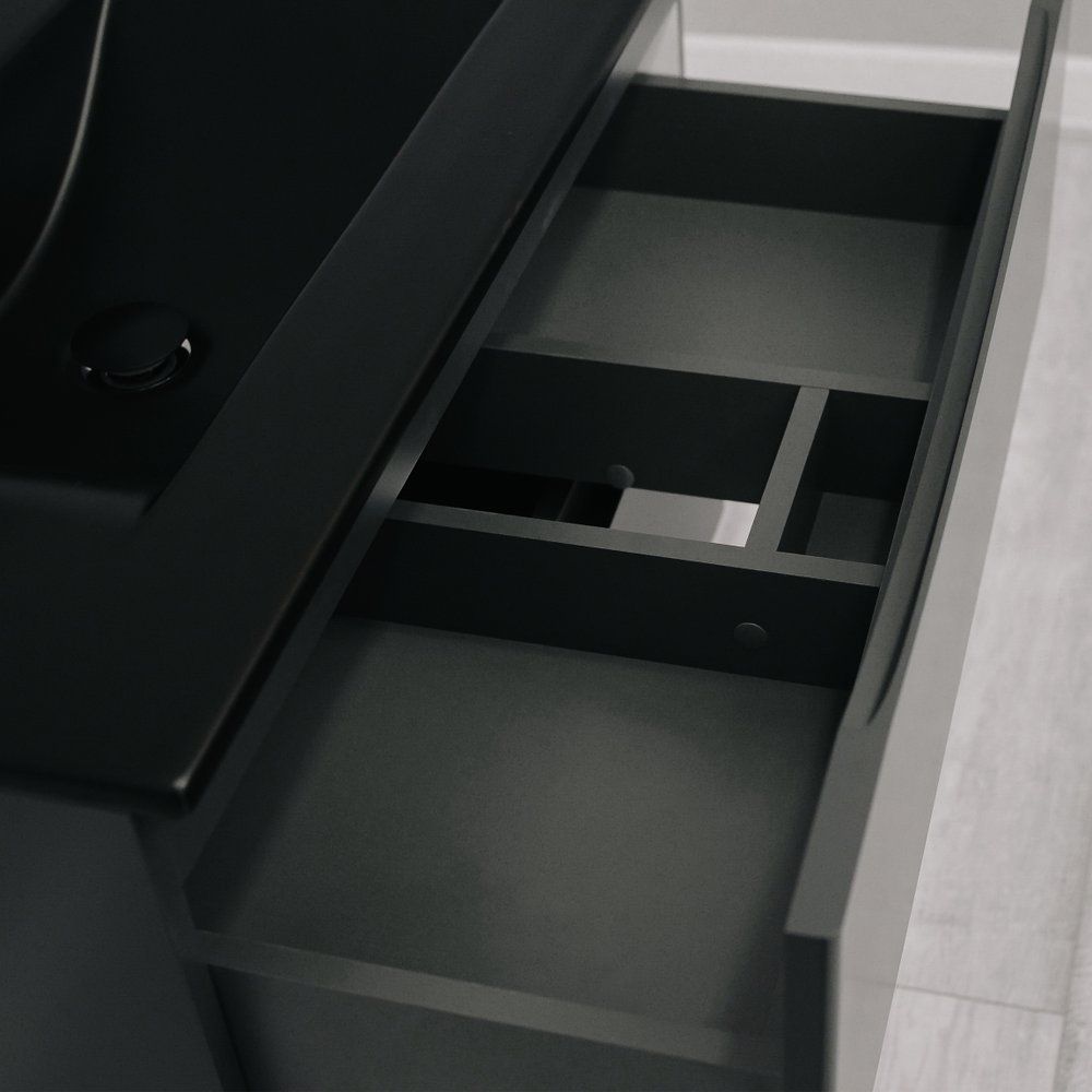 Мебель для ванной комнаты из коллекции Cube от бренда BOND — это идеальный выбор для современного интерьера. Этот стильный гарнитур включает в себя подвесную тумбу, черную раковину и круглое зеркало, создавая гармоничное сочетание форм и цвета. Особое внимание заслуживает серое матовое покрытие, которое добавляет изысканность в интерьер вашей ванной комнаты. Вместе с черной раковиной этот комплект выглядит элегантно и современно, подчеркивая ваш изысканный вкус.