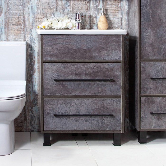 - Современный дизайн в популярном цвете "цемент" с черной фурнитурой.
