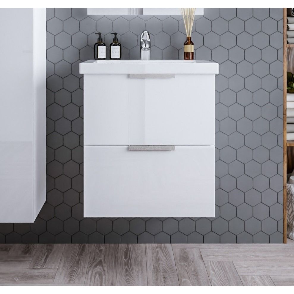 Тумба для комплекта Бриклаер Хелена 60 — компактные размеры 56,8x43,4x61,7 см позволяют эффективно использовать пространство. Подвесная конструкция облегчает уборку. Изготовлена из ЛДСП с ламинатом/эмалью, фурнитура цвета "серебро", что подчеркивает современный стиль.