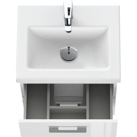 Тумба для комплекта Cersanit Lara 50 белая отличается компактными размерами 47,6x39,7x47 см и подвесной конструкцией. Оснащена механизмом доводчика для плавного закрывания, корпус выполнен из ДСП и покрыт эмалью и ламинатом, что защищает от влаги. Фасад изготовлен из МДФ с эмалированным покрытием, а фурнитура в гармоничном хромовом цвете.