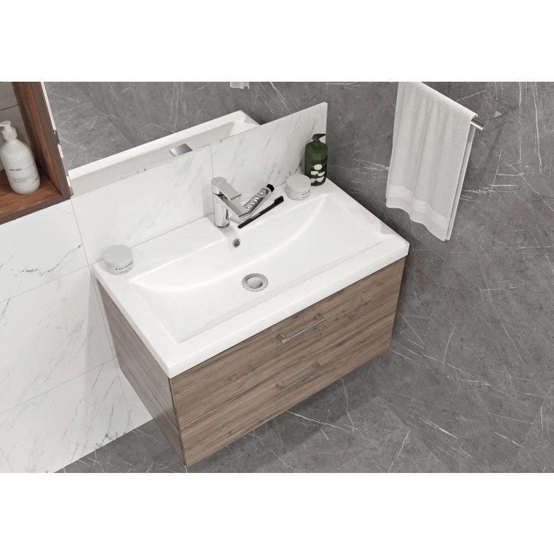 Тумба для комплекта Cersanit Lara 50 выполнена в стильном ореховом цвете с хромированной фурнитурой, имеет размеры 49x39,2x46 см и оборудована доводчиками для плавного закрывания. Корпус и фасад изготовлены из ЛДСП и ДСП с ламинатным покрытием, что гарантирует долговечность и устойчивость к влаге. Подвесной механизм позволяет установить ее на желаемую высоту. Раковина Cersanit Como 50 из фарфора обладает размерами 50x40 см, оснащена встроенным слив-переливом и рассчитана под сифон диаметром 3,2 см. Имейте в виду, что донный клапан приобретается отдельно. Зеркало Cersanit LED 051 pro 55 имеет размеры 55x4x80 см и выполнено из МДФ с подсветкой, сенсорным выключателем и антизапотевателем, оснащено динамиками и микрофоном.