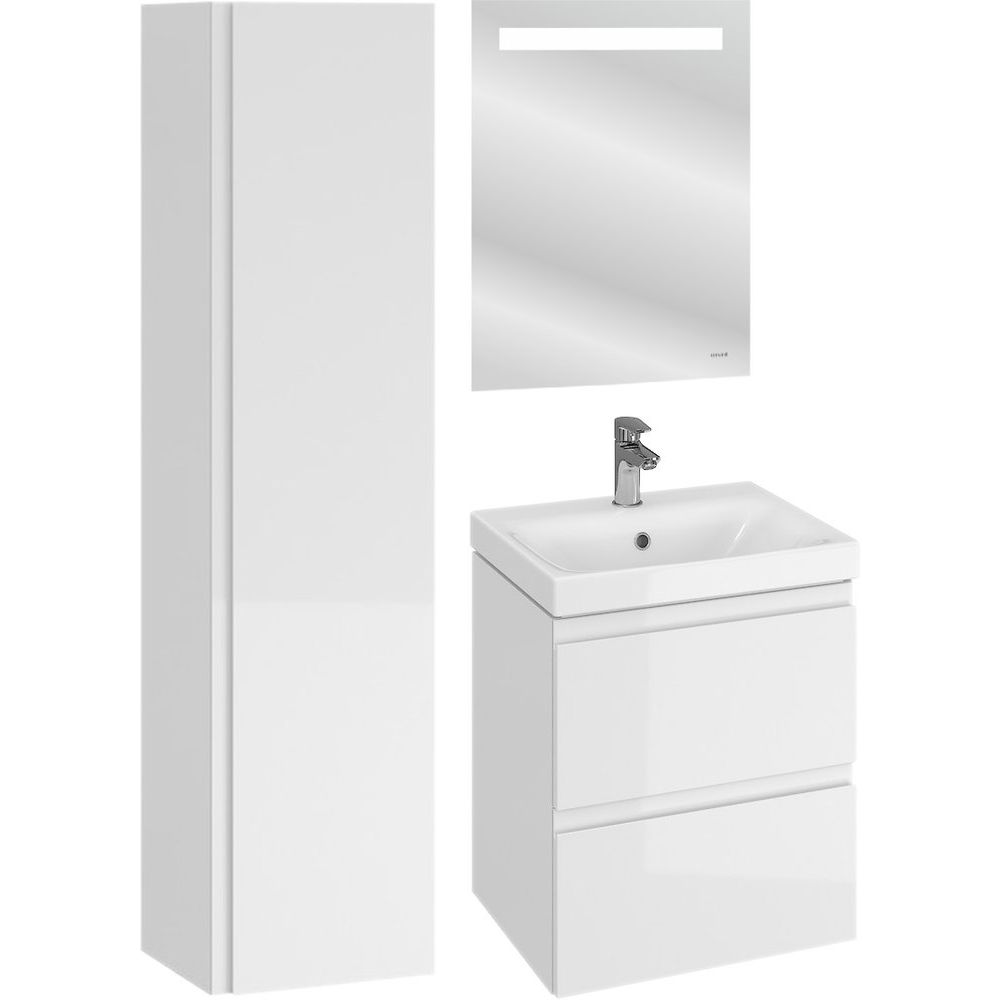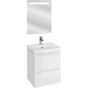 Мебельный комплект Cersanit Moduo включает подвесную тумбу, раковину и зеркало. Тумба (47,6x37,4x57 см) с доводчиком и прочными ящиками выполнена из ЛДСП и покрыта ламинатом, имеет гарантированное качество на 2 года. Раковина Como 50 (50x40 см) из фарфора с сифоном диаметром 3.2 см, предусмотрена под смеситель с одной отверстием, гарантирована на 10 лет. Зеркало LED 050 pro 55 (55x4x80 см) с антизапотевателем, оснащено подсветкой и часами, имеет сенсорный выключатель, рассчитано на 1 год гарантии.