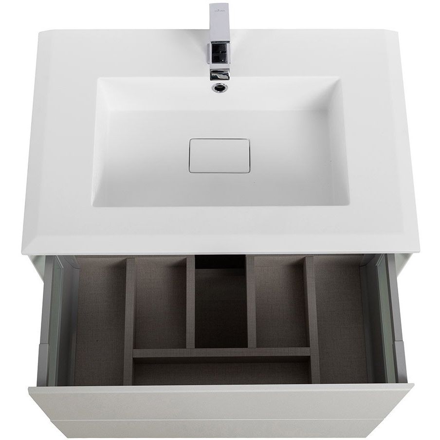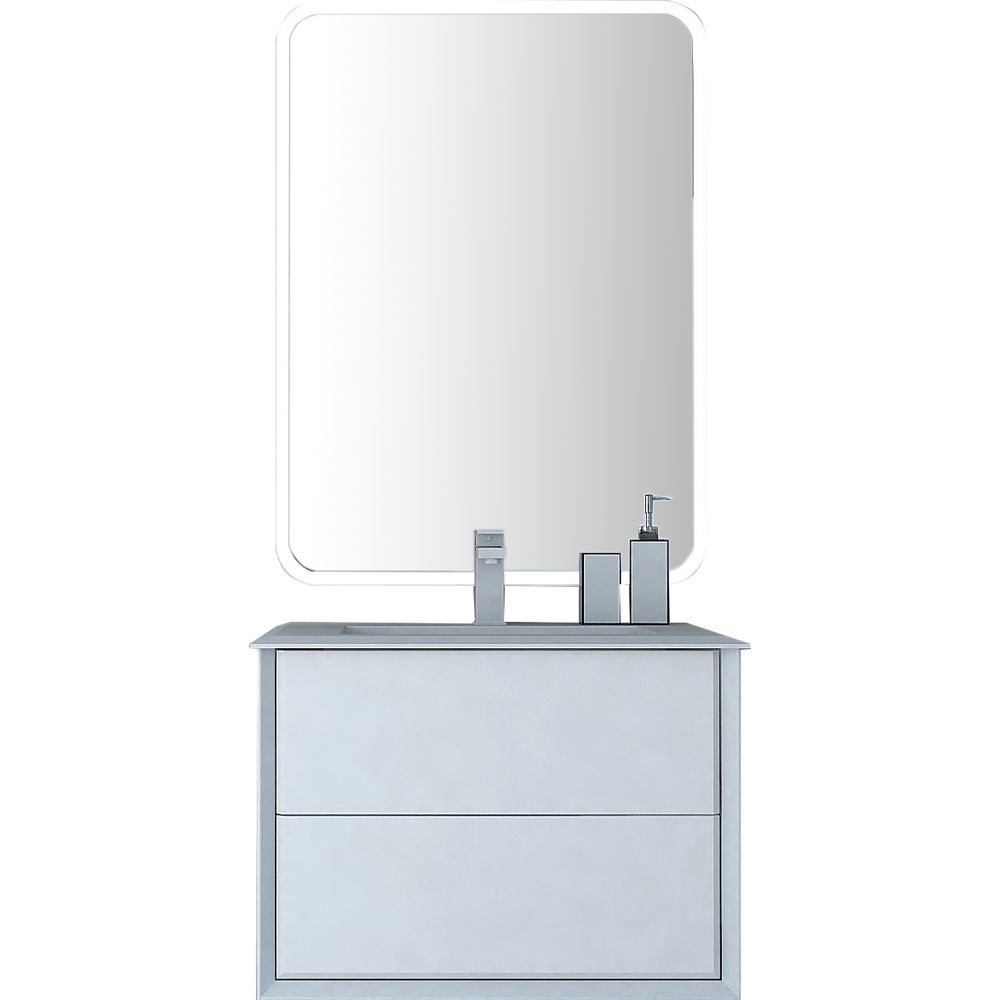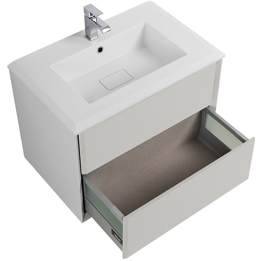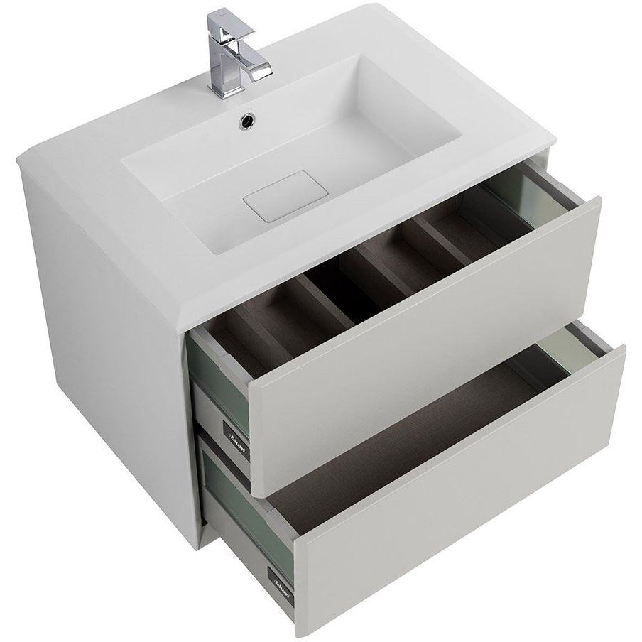 Этот гарнитур включает в себя тумбу с размерами 70x46x48 см и раковину размером 71x46 см, изготовленную из искусственного камня. Тумба подвесная, что делает уборку легче, а плавное закрытие ящиков обеспечивается инновационным механизмом доводчика. Все элементы покрыты пленкой для защиту и увеличенного срока службы. Зеркало с размерами 70x2x95 см оснащено LED-подсветкой и антизапотевателем, что делает его идеальным решением для влажных помещений.