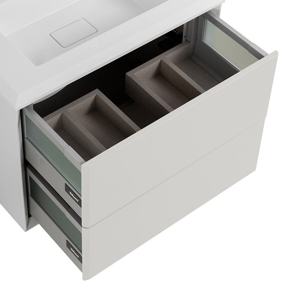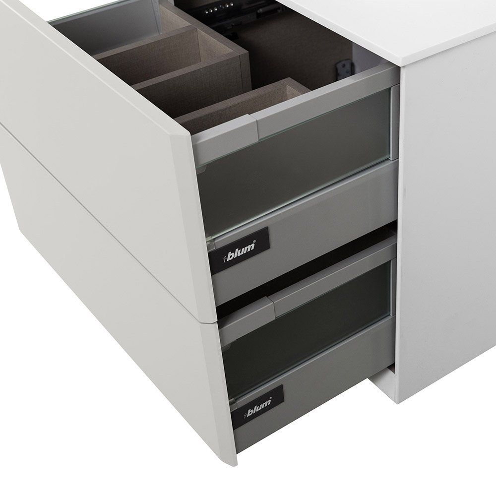 - Удобство эксплуатации благодаря механизму доводчика и нажимному механизму открывания ящиков.
