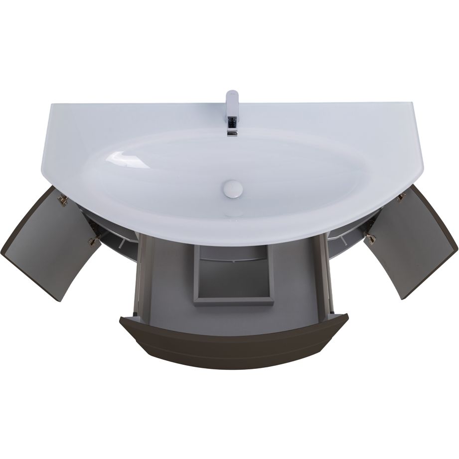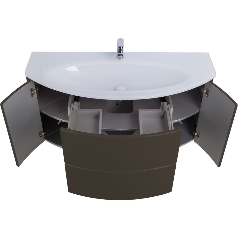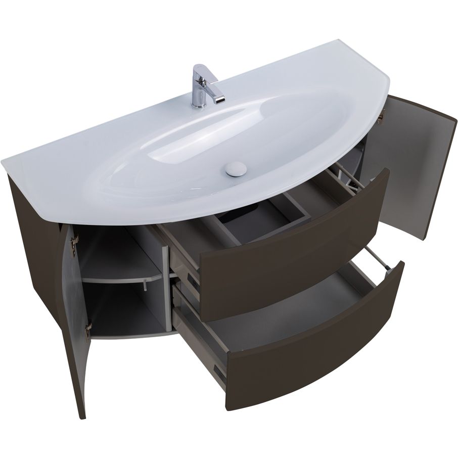 Комплект включает в себя подвесную тумбу Cezares Eden 120 с габаритами 121x51x55 см. Изготовленная из МДФ с покрытием пленкой, она оснащена доводчиком и нажимным механизмом открывания. Раковина Cezares Eden 82368 выполнена из стекла с размерами 122x52 см, имеет одно отверстие под смеситель. Зеркало Molveno, размером 120x80 см, выстроено с пластиковым корпусом и оснащено инфракрасным выключателем для подсветки. Гарантия на все изделия составляет 1 год, а производство — Италия.