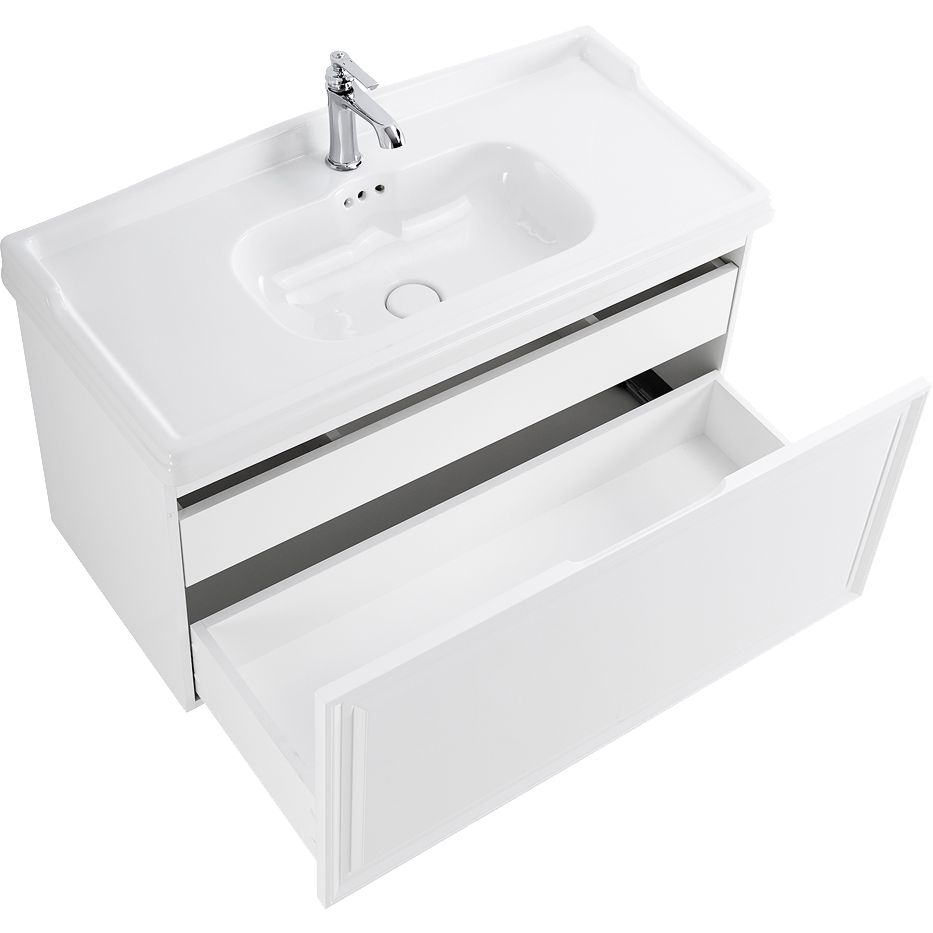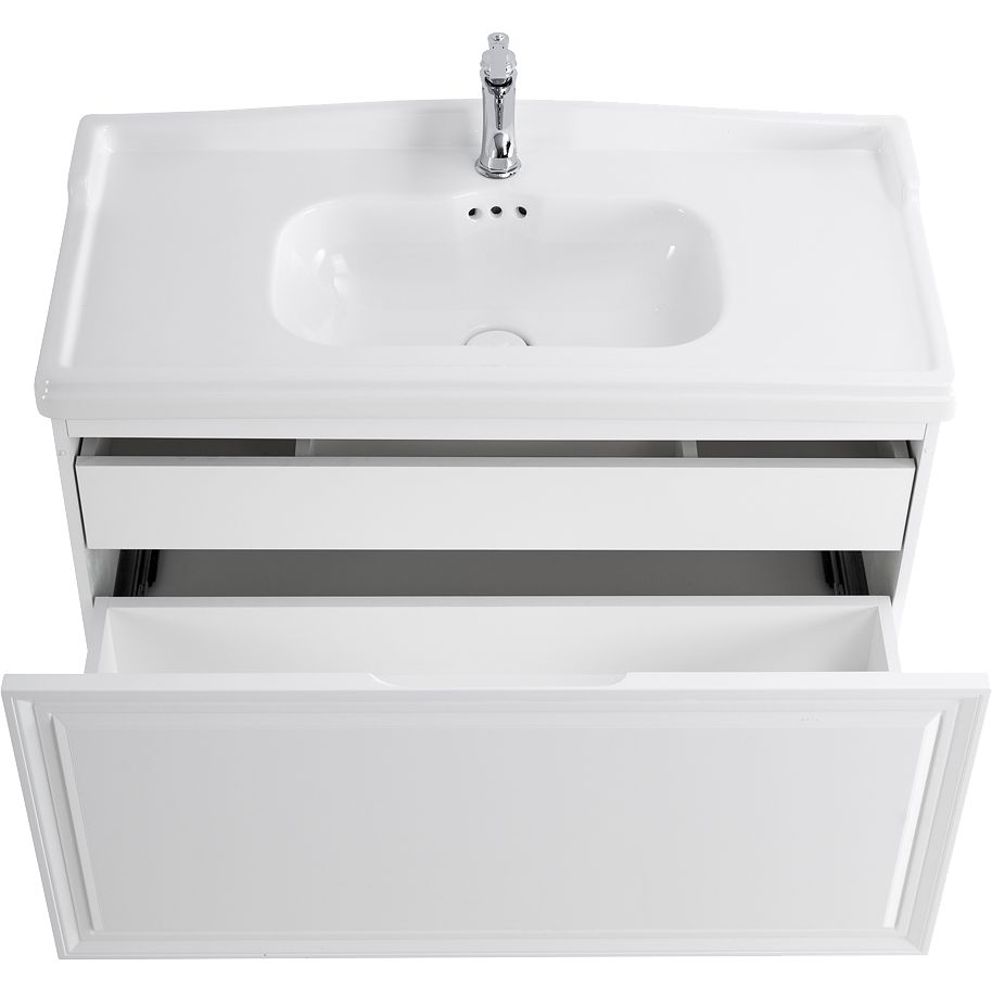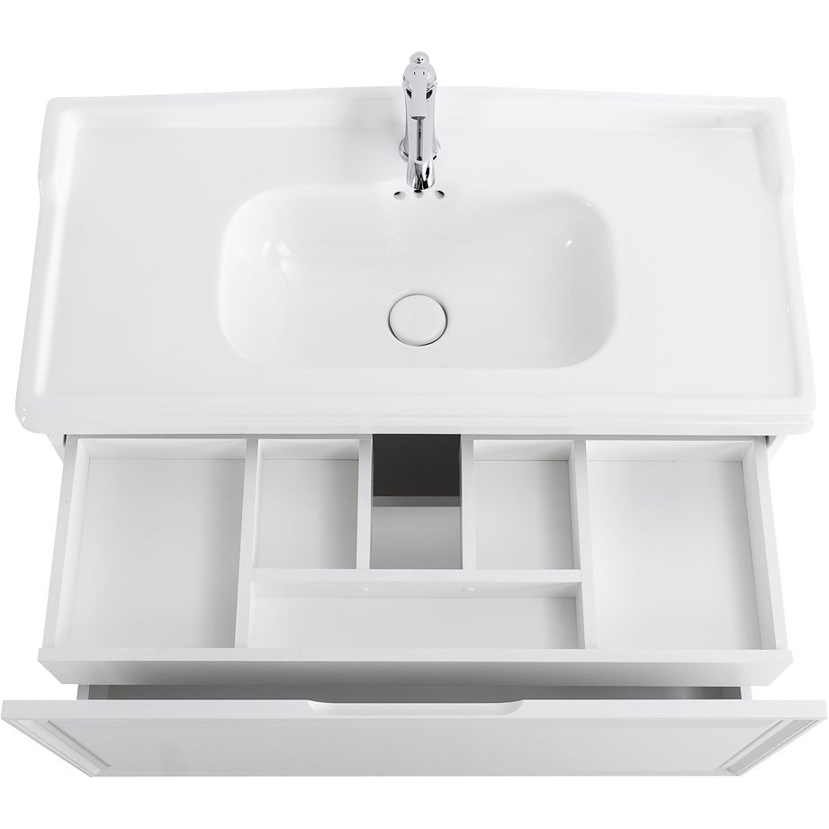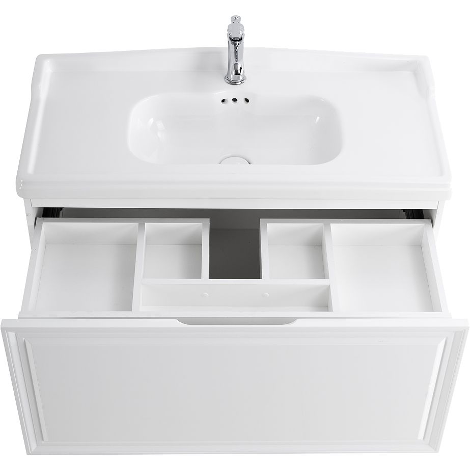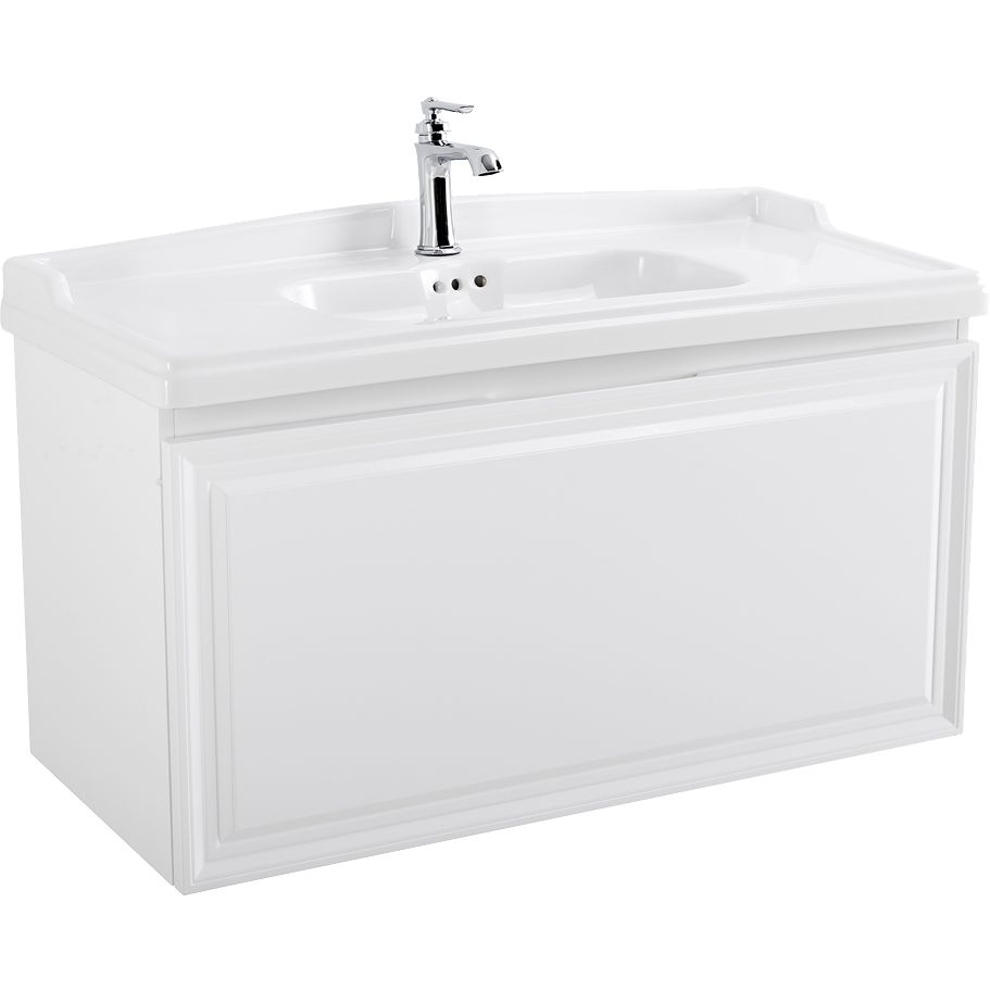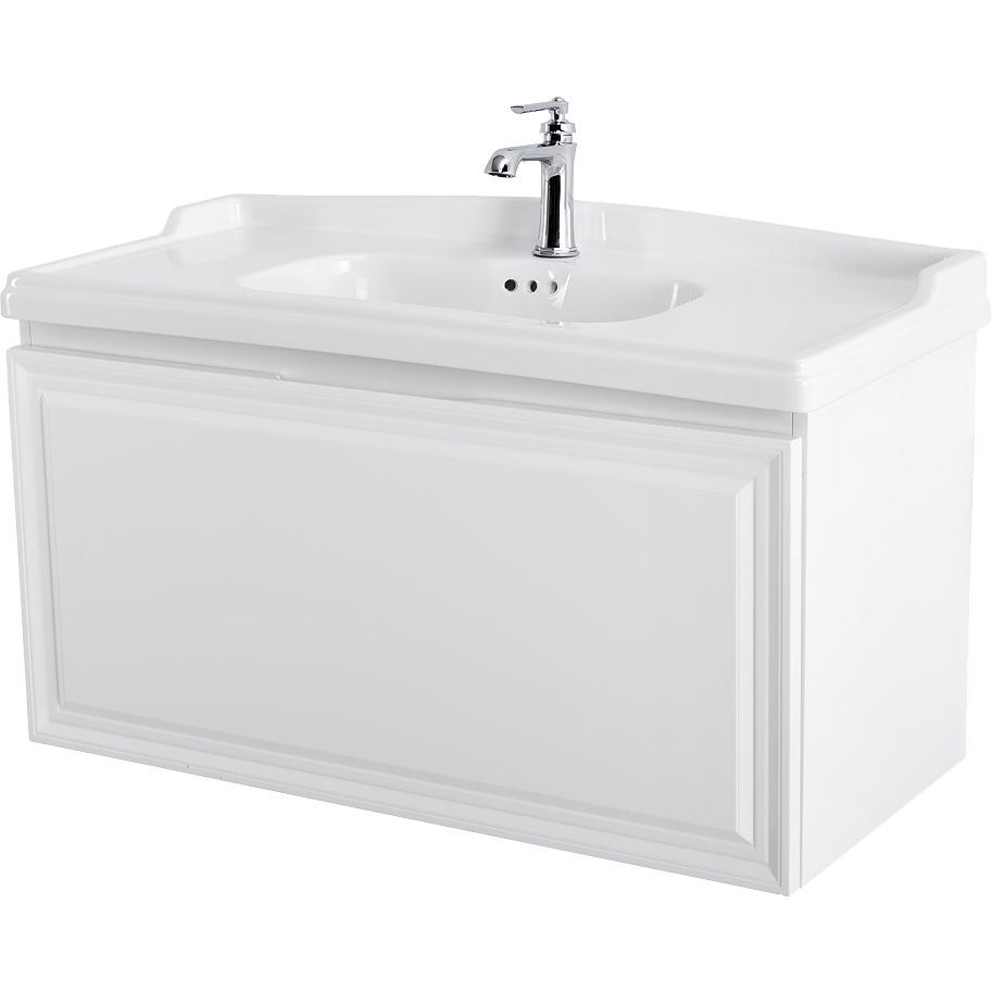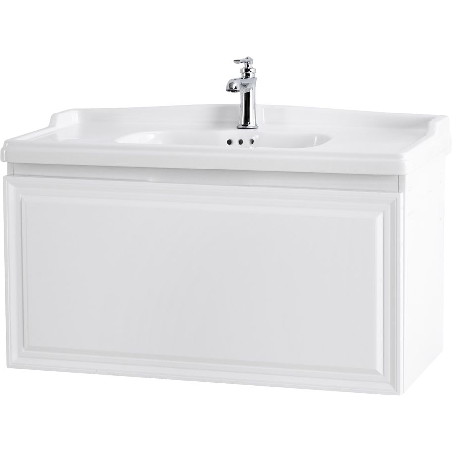 Комплект включает тумбу с габаритами 97x45,4x50 см, выполненную из МДФ с элегантным эмалевым покрытием, которая имеет один вместительный ящик с механизмом плавного закрывания. Мебельная раковина фаянсовая, размером 100x46 см, оформлена декоративной накладкой на слив и готова к установке смесителя. Зеркало Cezares 44996 размером 100x90 см дополняет гарнитур, имея LED-подсветку и сенсорное управление. У всех изделий гарантия 1 год, что подтверждает надежность итальянского производства.