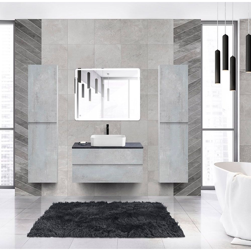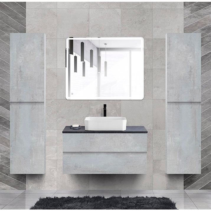 Тумба Cezares Molveno 46 100 beton имеет габариты 99,6x45,8x50 см и выполнена из ЛДСП с покрытием из ламината. Цвет корпуса и фасада создает гармоничную комбинацию, а подвесная конструкция позволяет сэкономить пространство. Раковина BelBagno BB1386 из фаянса с габаритами 49x38 см обеспечит максимальную функциональность и эстетичность. Она предназначена для сифона диаметром 3.2 см (докупается отдельно). Столешница BelBagno KEP-100-MNO marmo nero opaco из черного керамогранита имеет размеры 100x46x2 см и оснащена уже подготовленным отверстием под смеситель. Зеркало с подсветкой BelBagno SPC-MAR-1000-800-LED-TCH имеет размеры 100x3x80 см и удобство управления с помощью сенсорной кнопки. Подвесная установка позволяет элегантно завершить интерьер в ванной комнате.