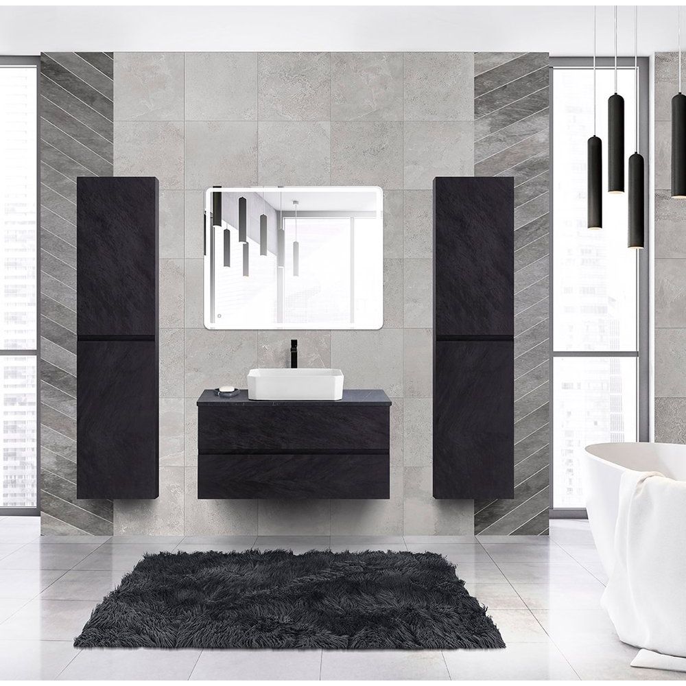 Тумба в комплекте с размерами 99,7x46x50 см сделана из ламинированного ЛДСП и обладает механизмом доводчика, предотвращающим резкие удары. Раковина BelBagno BB1386 накладная из фаянса, размеры 49x38 см, идеально сочетается со столешницей из керамогранита с первоклассным черным покрытием. Зеркало с подсветкой внутри и снаружи имеет сенсорное выключение и подвесное крепление, обеспечивая современный вид и удобство использования. На каждый элемент имеется фирменная итальянская гарантия от года до 25 лет.