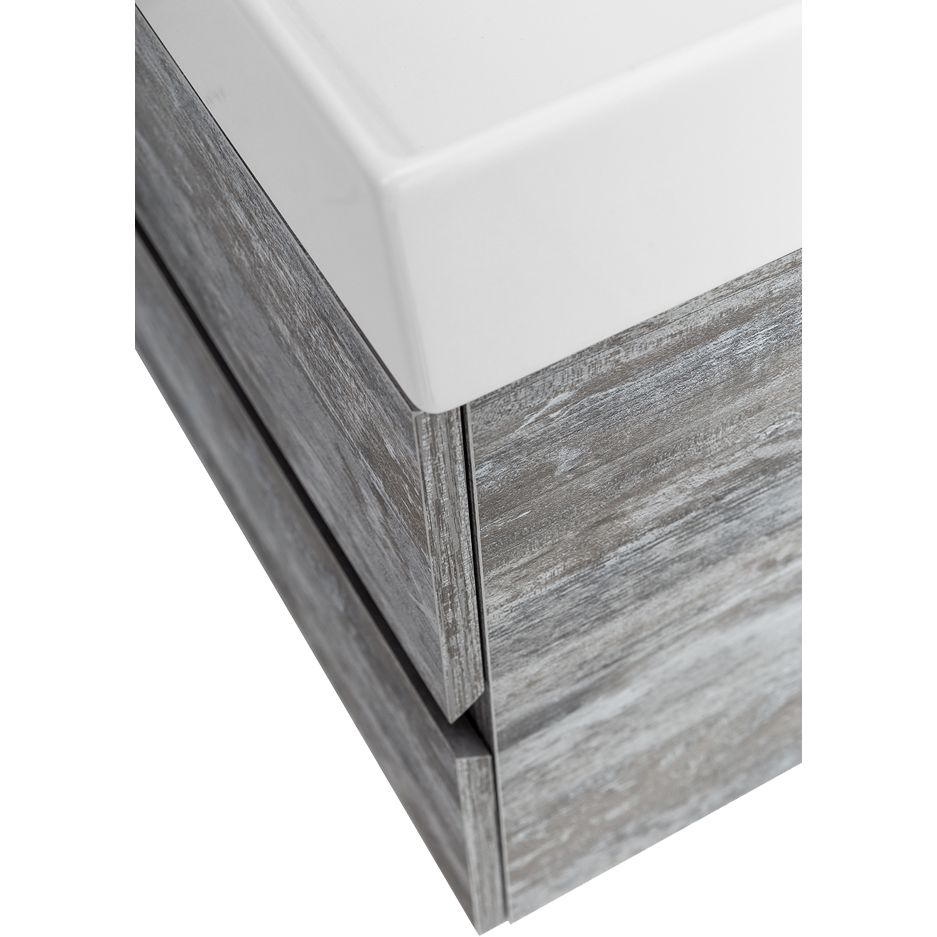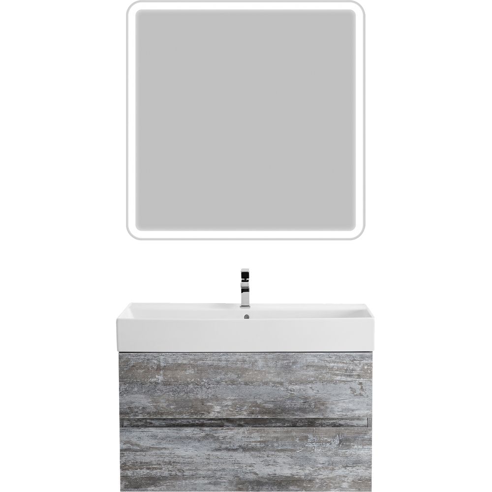 Комплект включает в себя подвесную тумбу Cezares Molveno 46 80 legno grigio с размерами 79,7x46x50 см, изготовленную из ЛДСП с ламинатным покрытием. Ящики тумбы оснащены механизмом доводчика. В комплект входит мебельная раковина из фаянса с размерами 80,5x46,5 см и одно готовое отверстие для смесителя. Кроме того, в комплекте стильное зеркало BelBagno с размерами 80x3x80 см, оснащенное сенсорным выключателем и подсветкой. Производство всех элементов комплекта — Италия, гарантия 1 год.