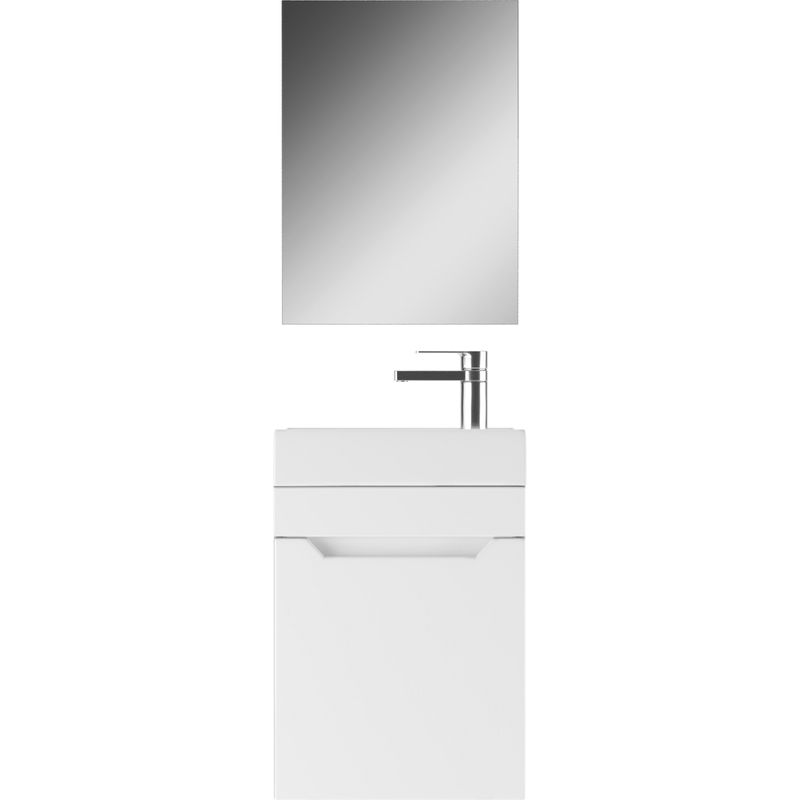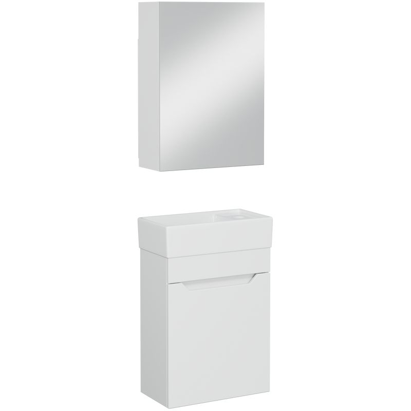 Комплект включает в себя подвесную белую тумбу, произведенную из ЛДСП с пленочным покрытием и фасадом из МДФ. Размеры тумбы — 39,2x21x50 см — делают её идеальной для компактных помещений. Зеркало-шкаф оснащено доводчиком для плавного закрывания дверок и имеет размеры 40,4x14,1x55,4 см. Все элементы обладают двухлетней гарантией, подчеркивающей надежность продукции.