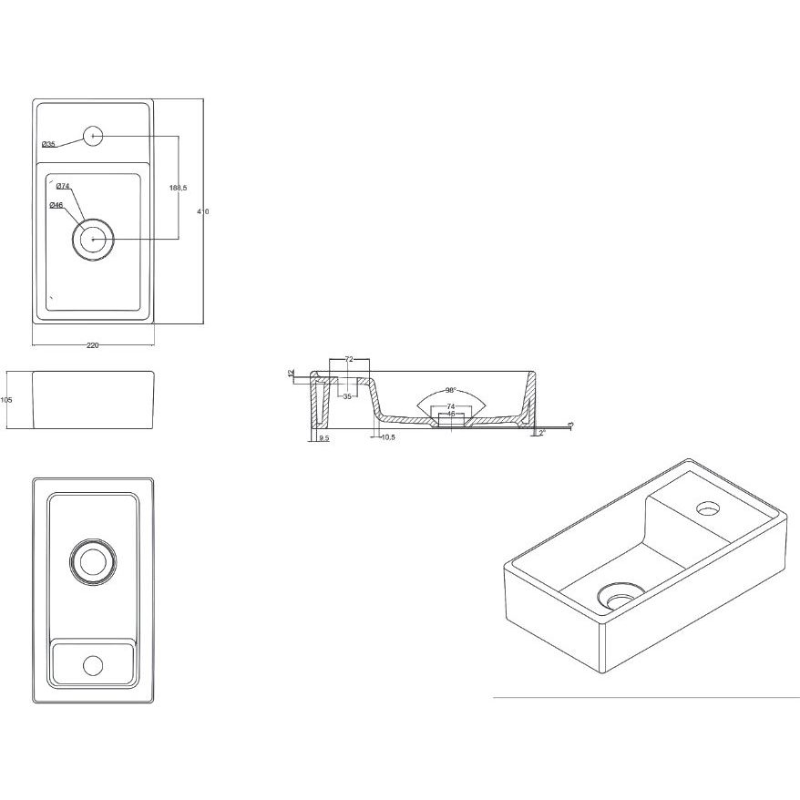Рукомойник DIWO Архангельск 40 из фаянса, с предусмотренным уловом для сифона диаметром 3.2 см и одно готовое отверстие под смеситель, что облегчает процесс установки. Имеет оборачиваемую конструкцию для гибкости монтажа.