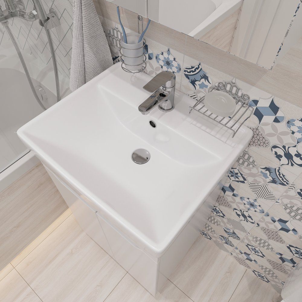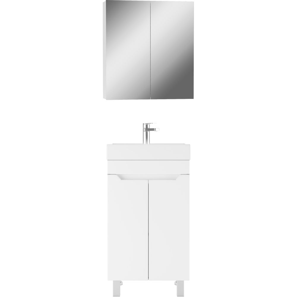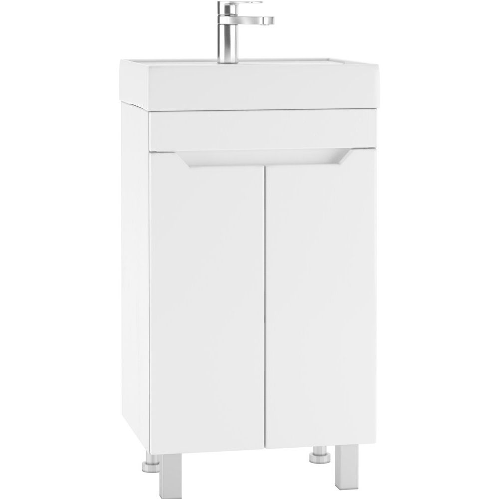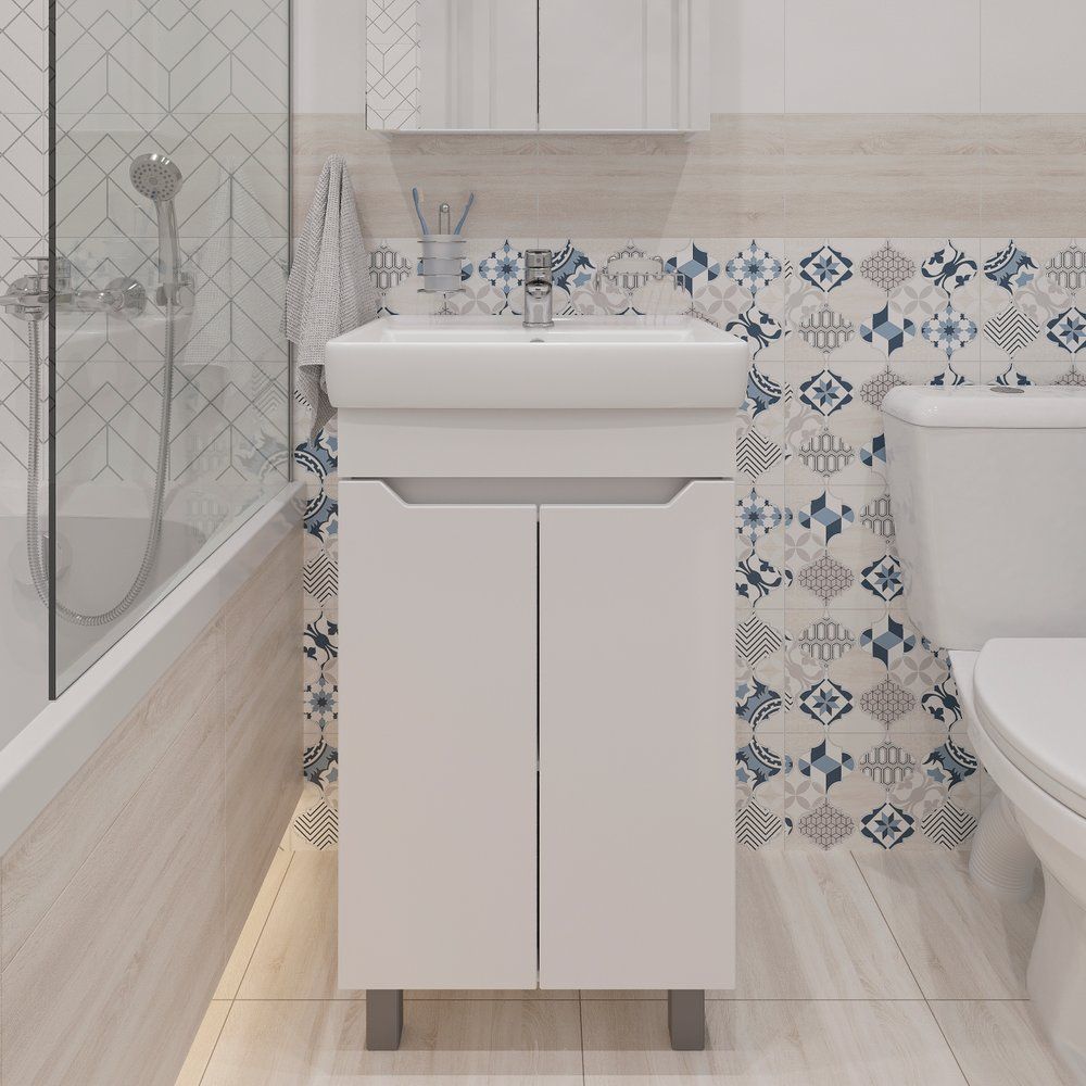 В комплект входит напольная тумба DIWO Архангельск 50 с размерами 47x38,4x79 см. Она изготовлена из ЛДСП с фасадом из МДФ, покрытыми пленкой для дополнительной защиты. Тумба оборудована дверками с механизмом доводчика, а внутри расположены несъемные полки. Раковина DIWO Енисей 50 изготовлена из фаянса и подвешивается на стену, имея размер 50x41,3 см и встроенный слив-перелив. В комплект входит бутылочный пластиковый сифон с боковым выпуском и гидрозатвором. Все элементы меблировки сделаны в России и имеют гарантию, соответственно, 1 и 5 лет. Дополняет комплект зеркало-шкаф DIWO Архангельск 50 размером 50,4x14,1x55,4 см с пленочным и ламинированным покрытием корпуса из ЛДСП.