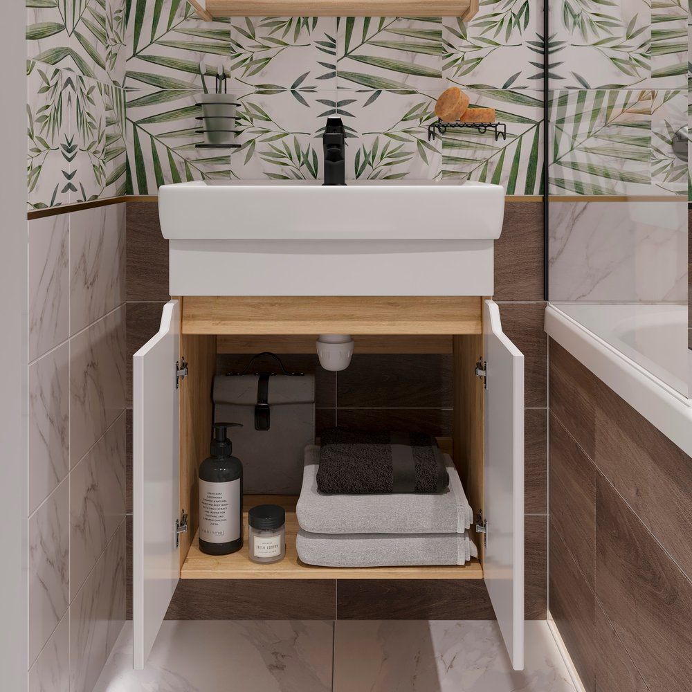 Мебель для ванной комнаты — это не просто практичное решение, но и важный элемент уюта и стиля вашего дома. Подвесной гарнитур DIWO Архангельск 50 в цвете дуб сонома является отличным выбором для тех, кто ценит высокое качество и современный дизайн. Компактные размеры позволяют удачно разместить комплект даже в небольших ванных комнатах, а использование проверенных материалов гарантирует долгий срок службы.