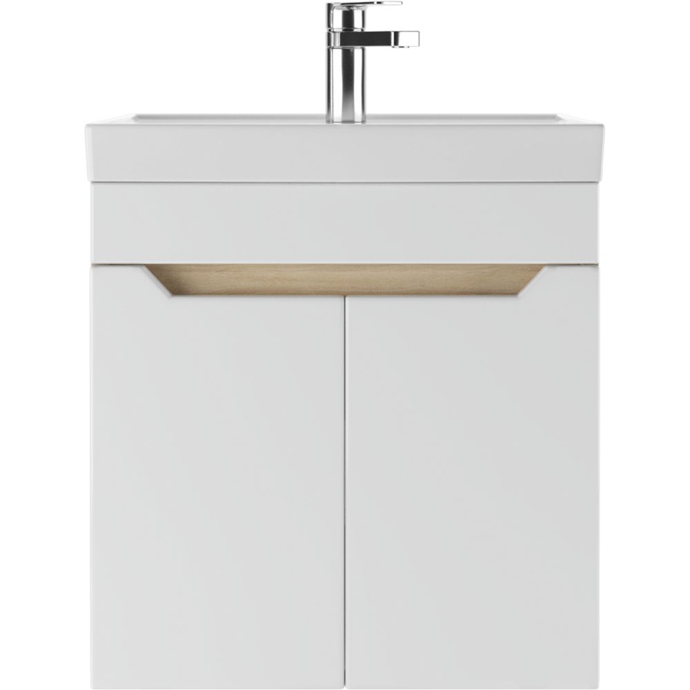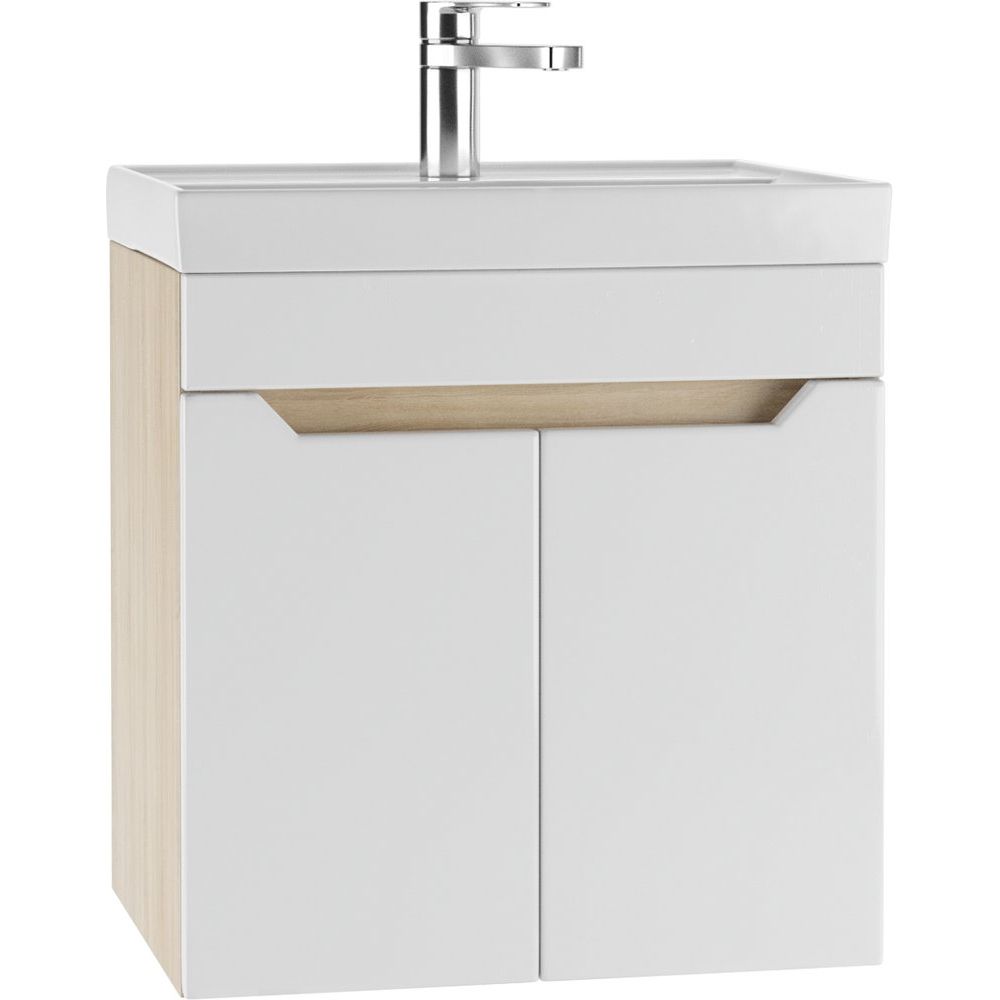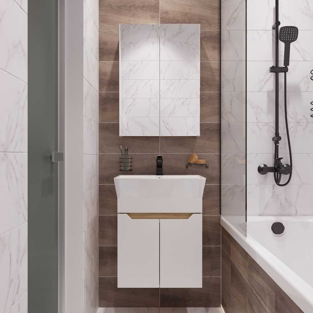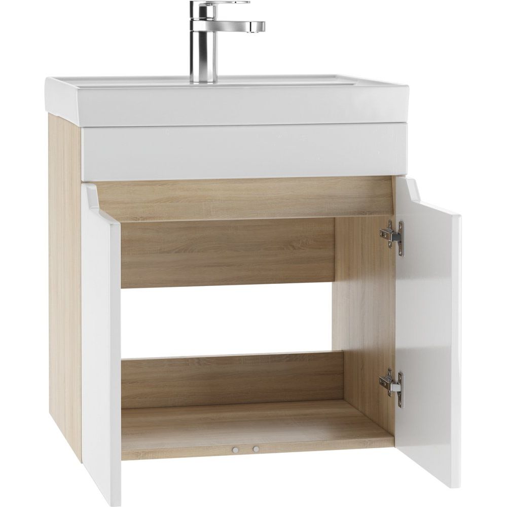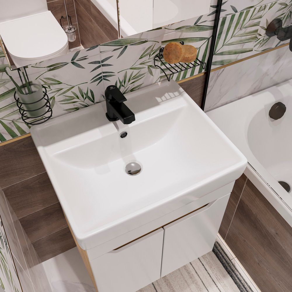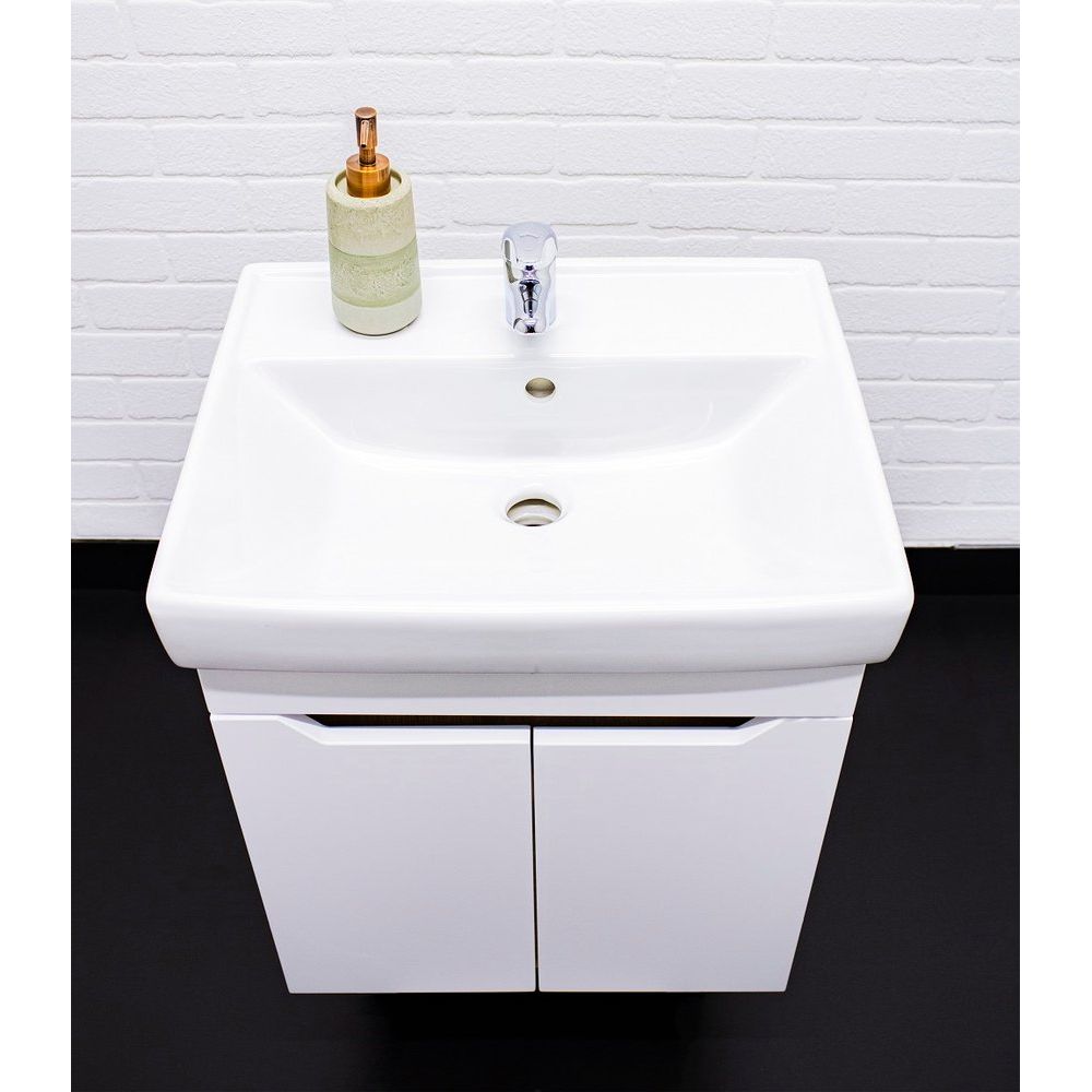 Комплект включает в себя подвесную тумбу DIWO Архангельск 50, выполненную с использованием ЛДСП и МДФ с пленкой, что обеспечивает долговечность и современный вид. Благодаря механизму доводчика дверки закрываются плавно и почти бесшумно. Тумба имеет габариты 47x38,4x50 см.
