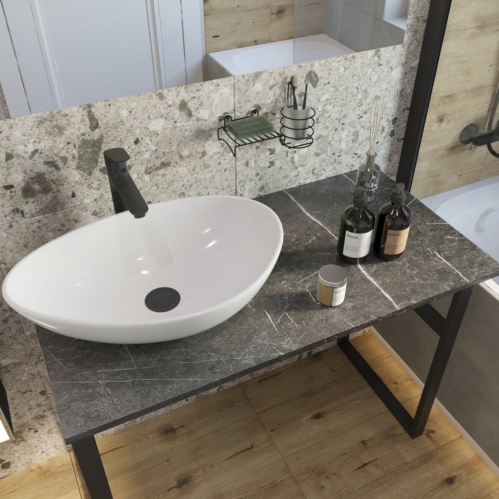 Обратите внимание, что при выборе сифона необходимо учитывать конструкцию мебели и параметры раковины, подбирая аксессуары индивидуально. Столешница предварительно подготовлена для установки раковины и содержит необходимые отверстия. Помните о необходимости приобретения некоторых элементов установки, таких как донный клапан, отдельно.