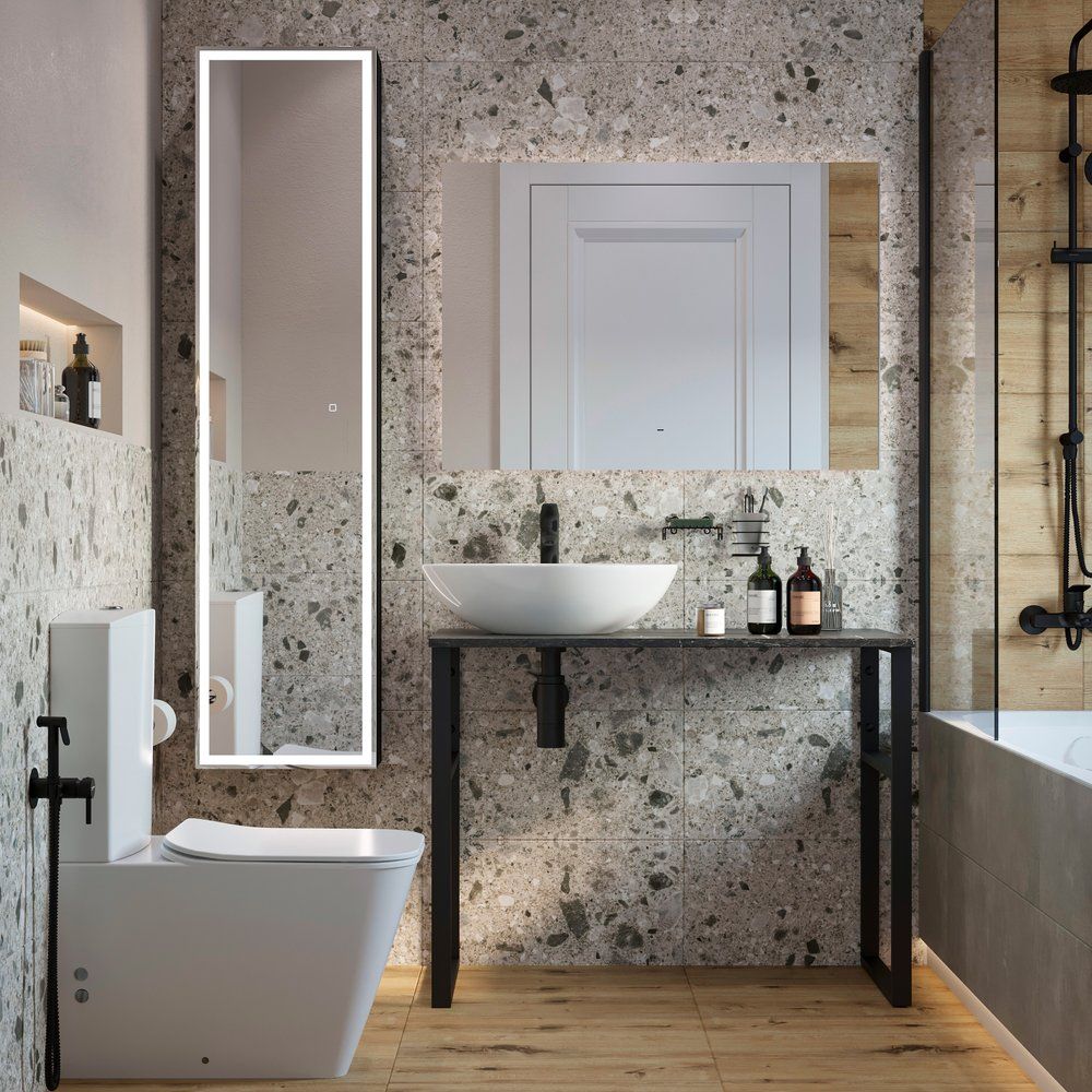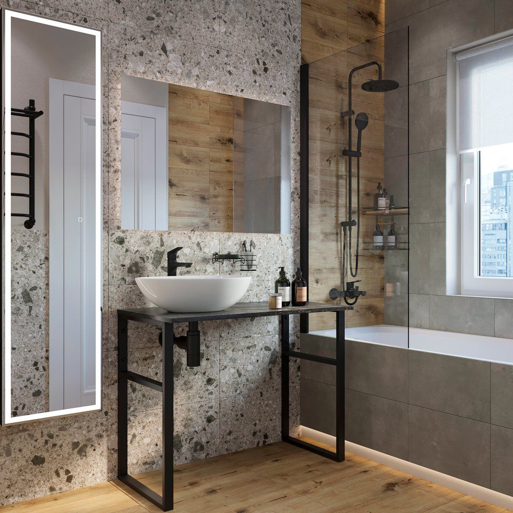 Представляем вашему вниманию мебельный гарнитур DIWO «Элиста 100» — стильное и практичное решение для вашей ванной комнаты. Этот комплект идеально сочетает в себе современный дизайн и функциональность. Необычное решение с заменой тумбы на столешницу добавляет интерьеру лёгкость и оригинальность, а реалистичный оттенок "чёрный мрамор" становится удачным акцентом. Дополняет ансамбль белая фарфоровая раковина DIWO Moduo 55 Leaf, элегантно выполненная в форме листа. Она удобно размещена слева, оставляя место для необходимых в быту мелочей. Большое прямоугольное зеркало с LED-подсветкой и инфракрасным датчиком станет вашим незаменимым помощником, визуально увеличивая пространство и позволяя регулировать освещение по мере необходимости.