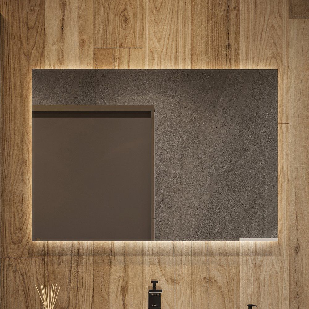 - Технологичность — зеркальное полотно с инфракрасным выключателем и регулируемой LED-подсветкой.
