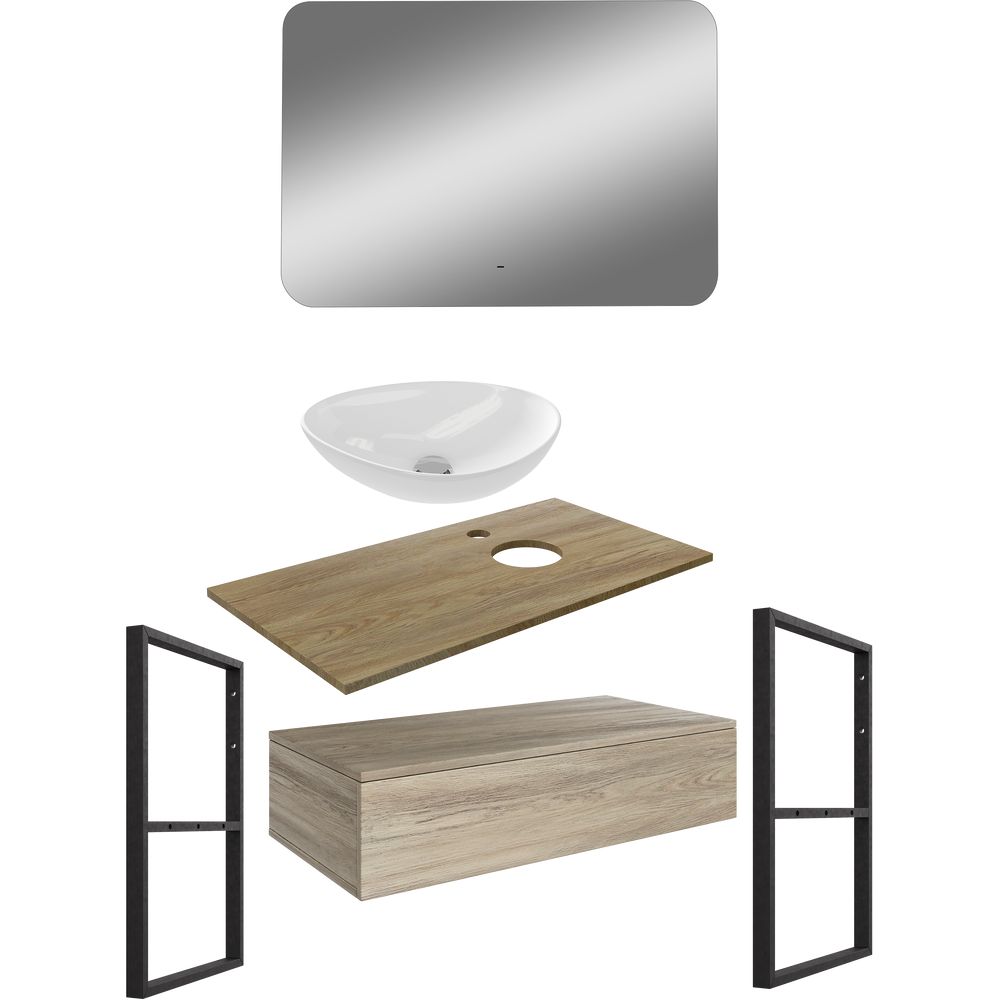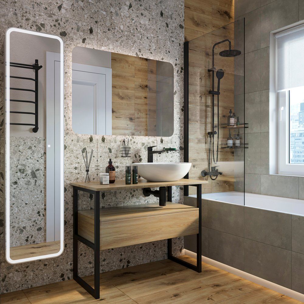 Превратите вашу ванную комнату в оазис стиля и функциональности с мебельным гарнитуром DIWO Элиста 100 в отделке светлое дерево с раковиной Moduo 55 Leaf. Этот комплект, выполненный в индустриальном лофт-стиле, объединяет в себе современные технологии и эстетичный дизайн. Элементы из МДФ защищены от влаги с помощью специальной пленки, а черные стальные держатели гарантируют надежность подвесного монтажа. Контрастная белая раковина, выполненная из высококачественного фарфора, добавляет яркости и элегантности в интерьер. Завершает образ черное зеркало с подсветкой и удобной полкой для хранения необходимых вещей.