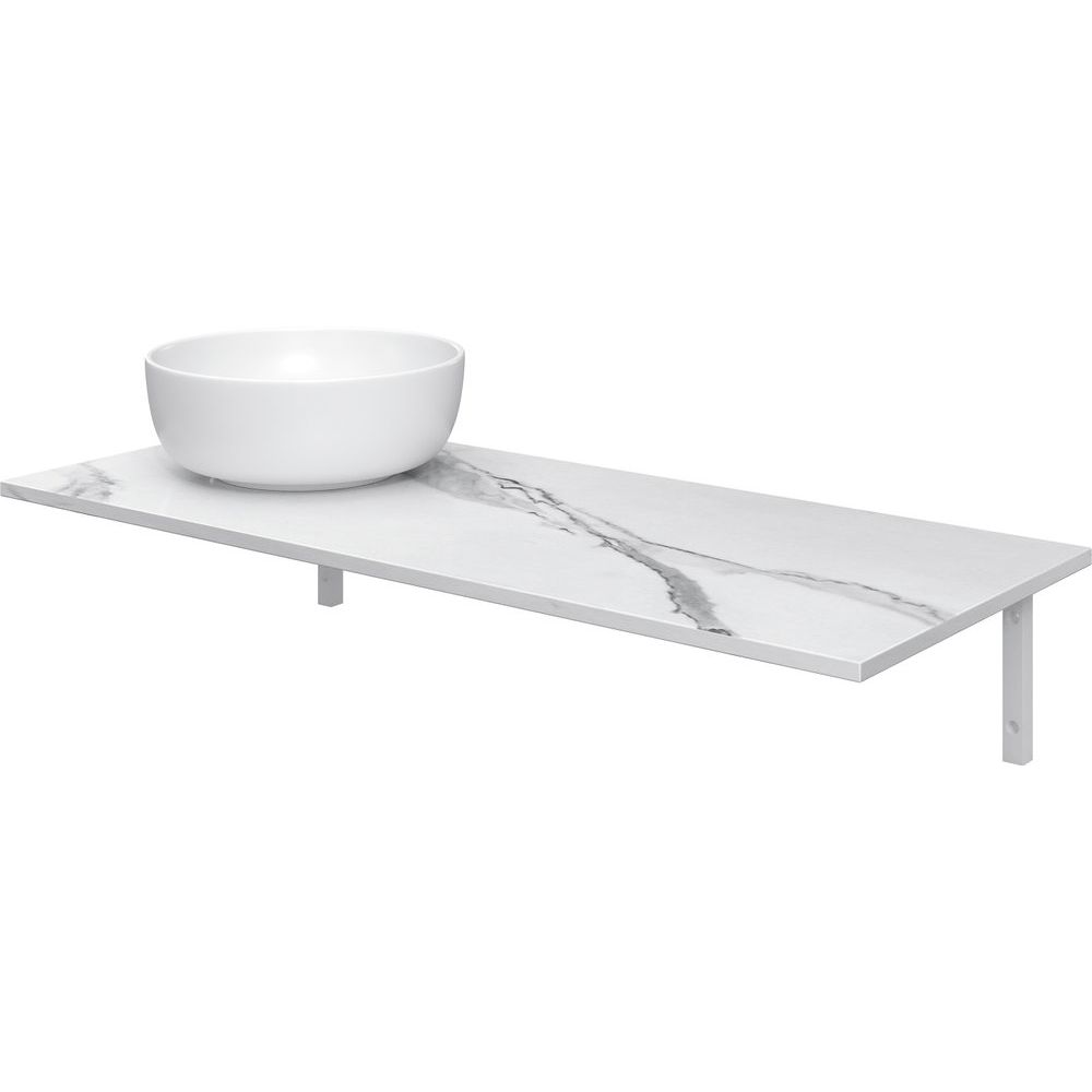 Столешница DIWO Элиста 120, выполненная из МДФ с покрытием пленкой, размером 120x51x2 см, украшена текстурой белого мрамора и имеет отверстие для установки смесителя слева.