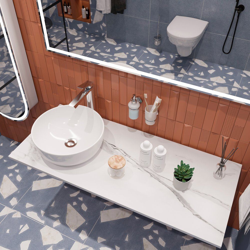 - Столешница с фактурой белого мрамора для стильного интерьера.